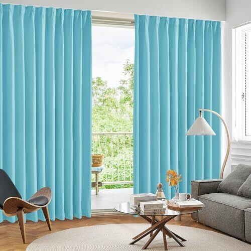Deconovo 遮光カーテン ドレープカーテン 無地 幅130cm丈200cm ターコイズブルー 2枚入 1級遮光 おしゃれ 仕切り 幅広い 形状記憶加工 北欧 UVカット 断熱 防寒 節電対策 昼夜目隠し