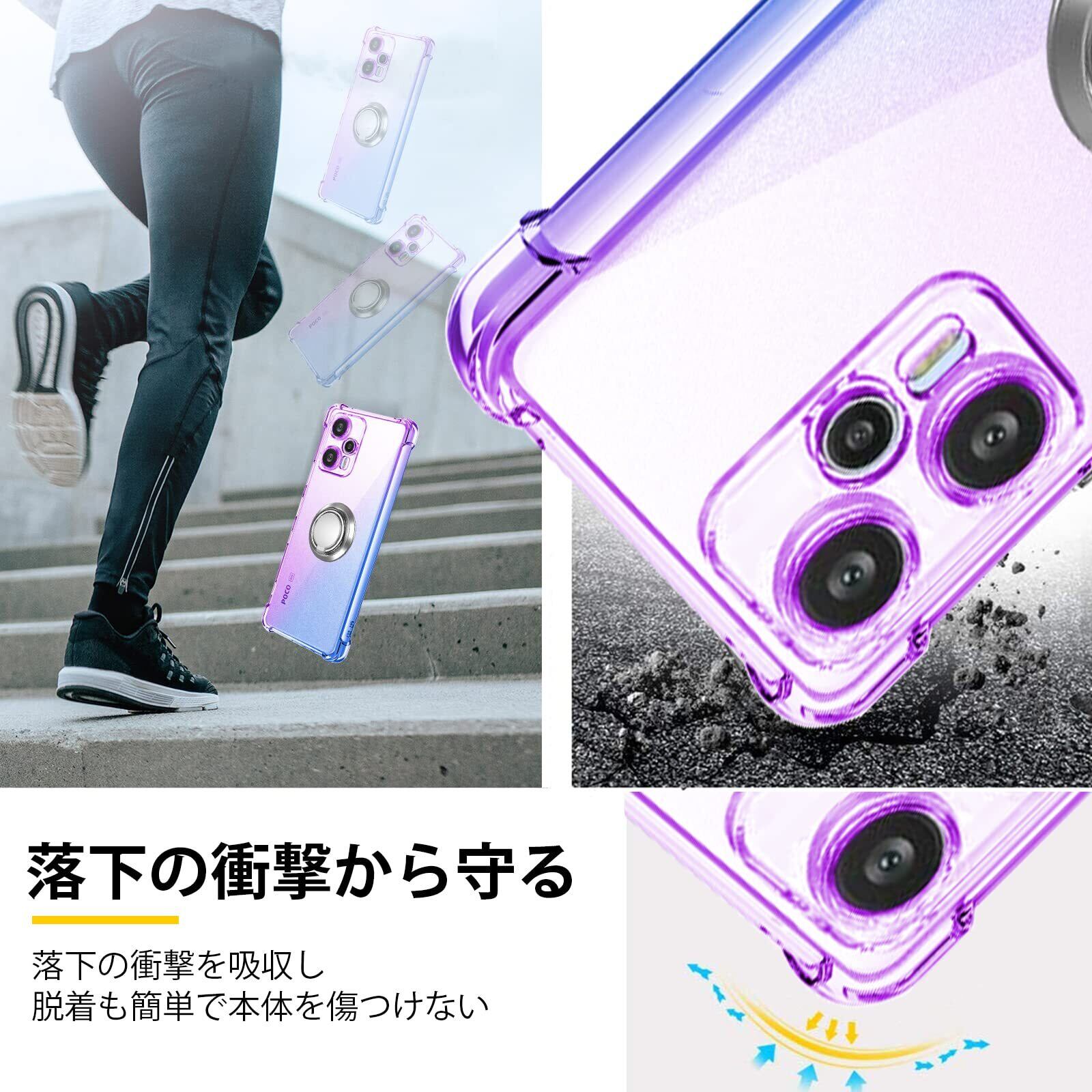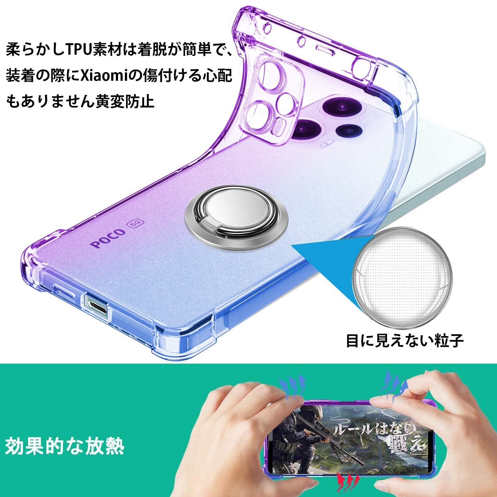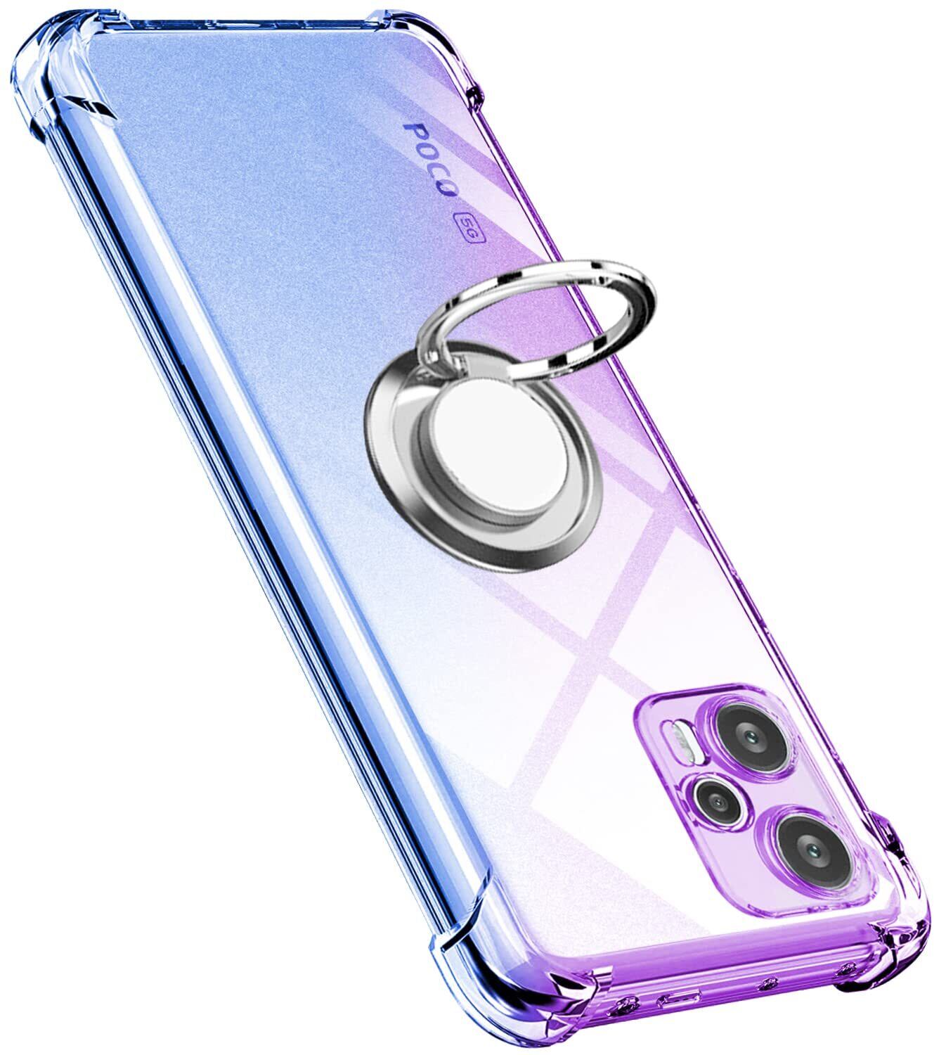 Xiaomi POCO F5 ケース リング TPU 薄型 軽量シリコン グラデーション色 ケース 耐衝撃 指紋防止 車載ホルダー対応 防塵 一体型 人気ストラップホール付き 携帯カバー(パープルブルー)