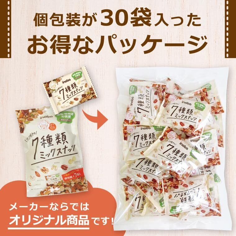 【稲葉ピーナツ公式】 ナッツ好きの7種類 (ミックスナッツ,18g×30袋) EC限定 メーカーオリジナル ロカボ ナッツ 個包装 小分け 持ち運び 素焼き 無塩