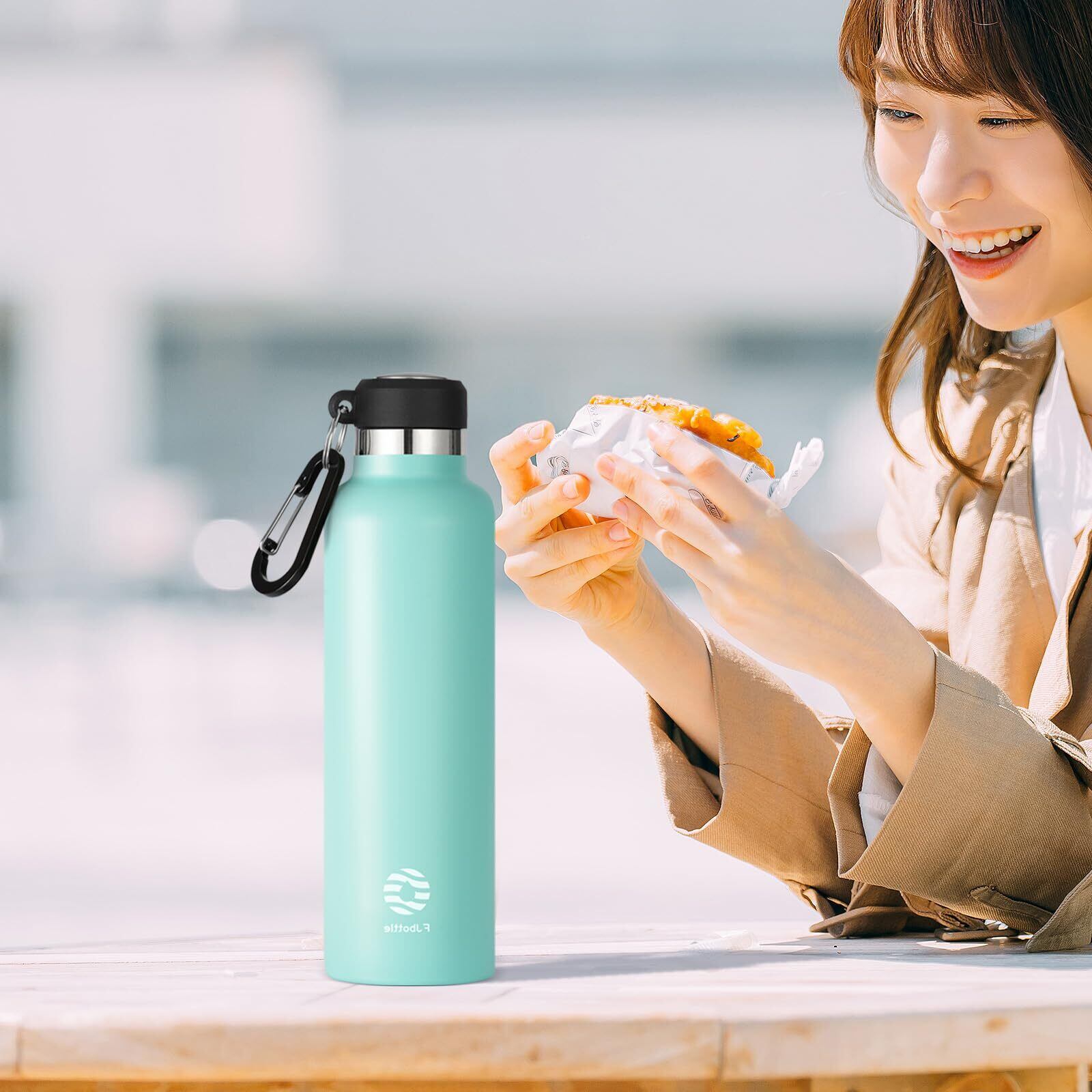FJbottle 水筒 600ml 真空断熱 保温 保冷 第2世代 スポーツボトル 直飲み ステンレスボトル スポーツ飲料対応 洗浄用スポンジ付き 男の子 女の子 大人 子供 ティファニーブルー