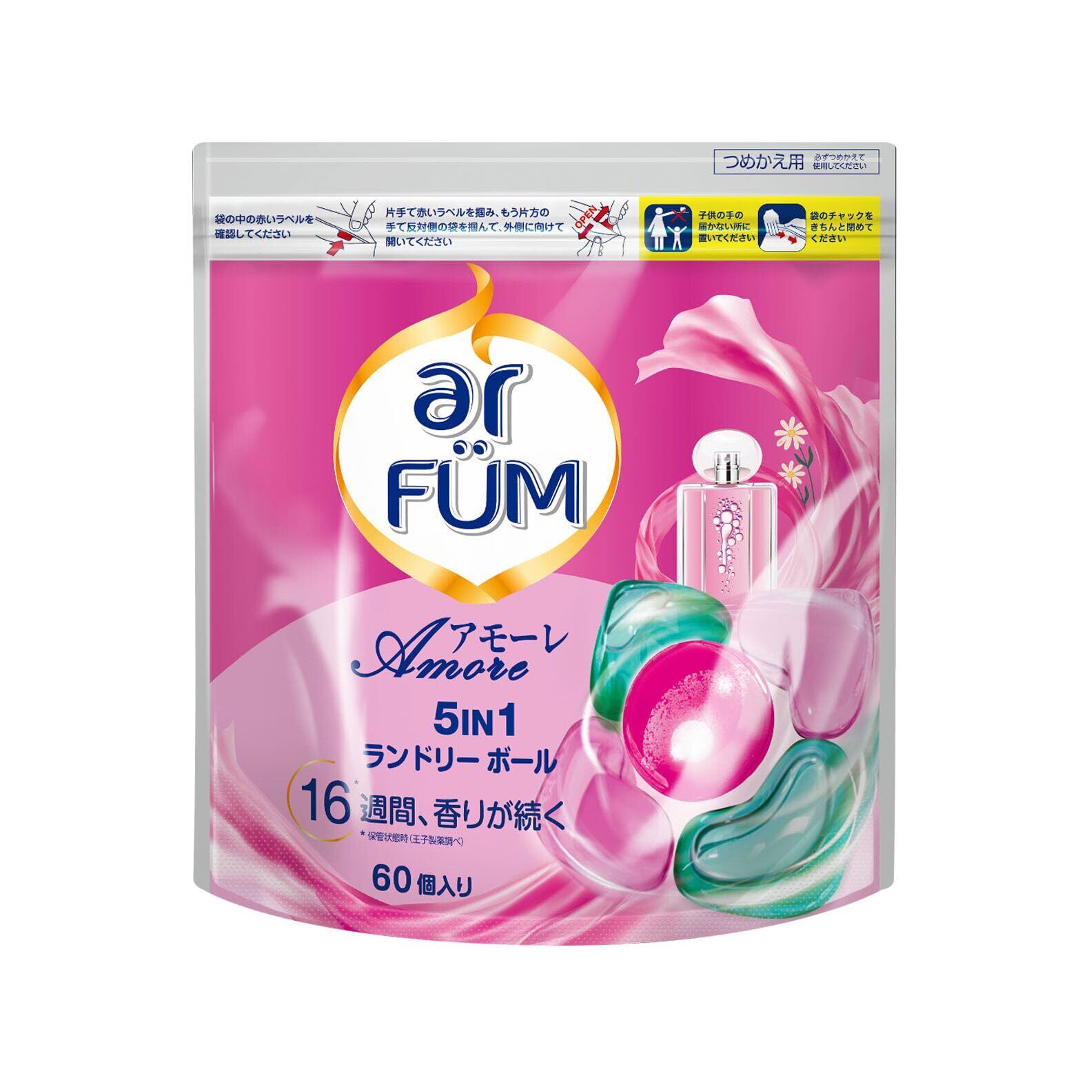 【韓国1.2億個販売突破】洗濯洗剤 アフューム arfum アモーレ Amore ジェル ボール型 5in1 柔軟剤入り 大容量 詰替(詰め替え) 日本製 (詰替大60粒)