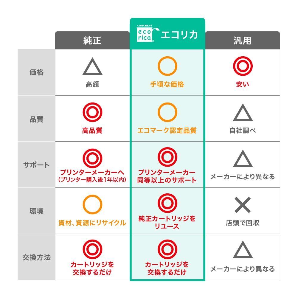 また、エコリカは全製品、環境・品質・安全性の厳しい認定基準をクリアしたエコマーク認定商品で、純正品と同等の印刷枚売もしています。