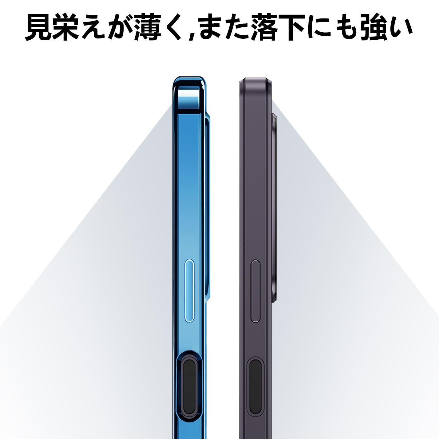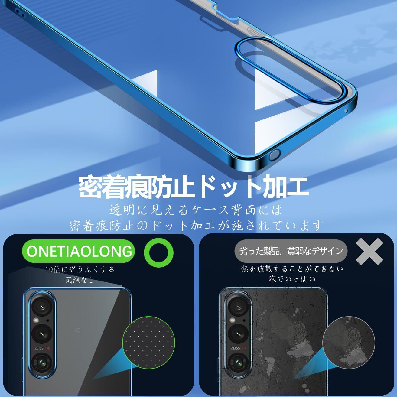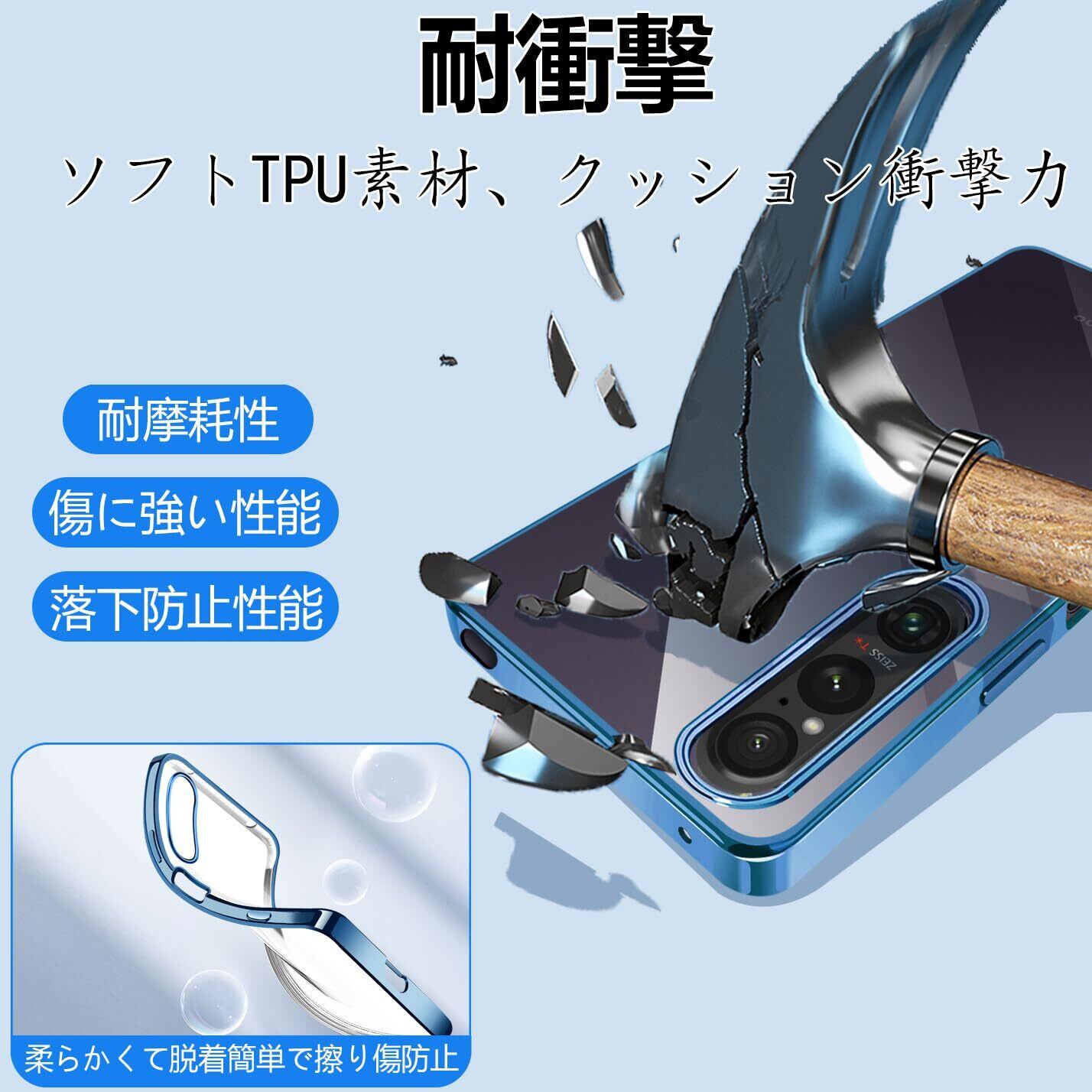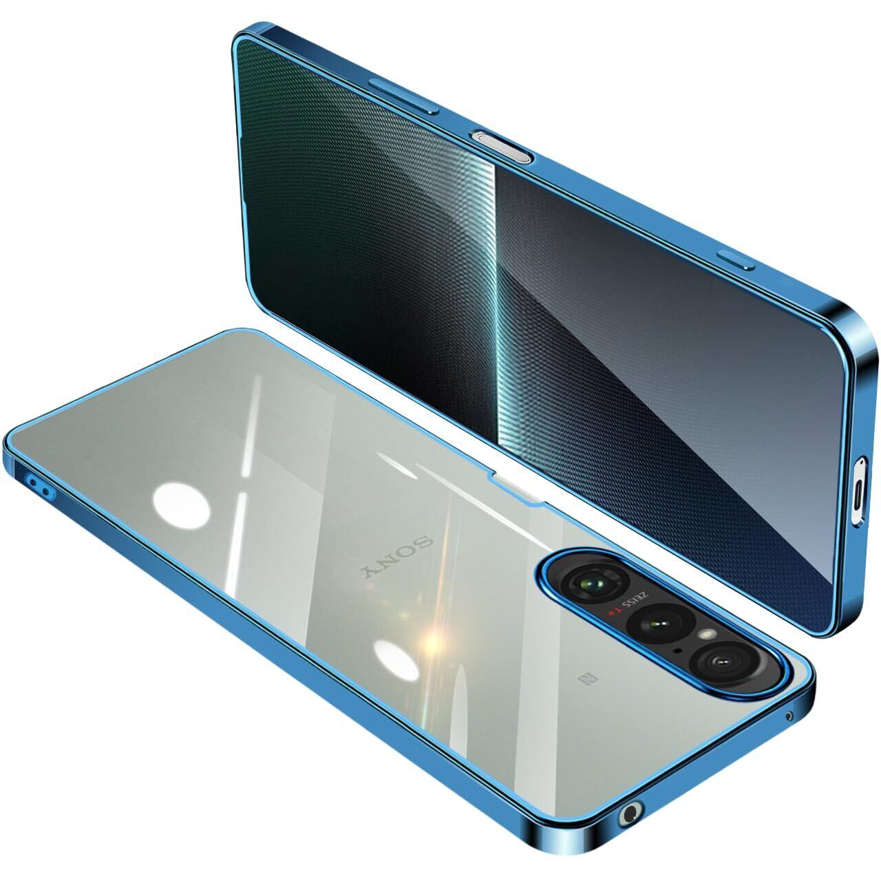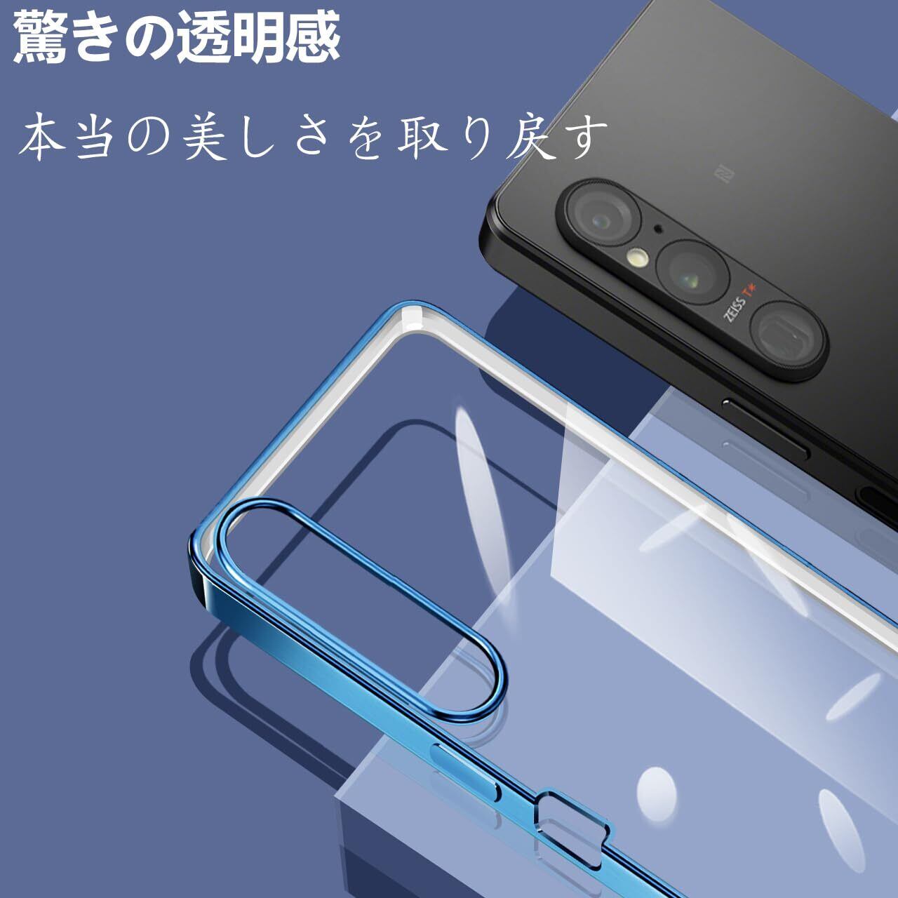 Sony Xperia 1 V ケース クリア SO-51D SOG10 XQ-DQ44 透明 ガバー エクスペリア1V スマホケース 耐衝撃 TPU 薄型 スリム 擦り傷防止 黄変防止 メッキ加工 ストラップホール付き(ブルー)