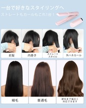 【コードレス充電式ストレートヘアアイロン】重量は約260g、本体は20cmx3.5cmの小さいヘアアイロンなので、また、コンセントを挿せなくても使えるコードレスヘアアイロンは、普段のバッグにもすっぽり収納できます。出先での化粧直しにイチオシ!髪を挟む部分がなだらかな曲線なので、ストレートとカールの2wayで使えます!充電式なので、いつでも・どこでも気軽にスタイリングできます。