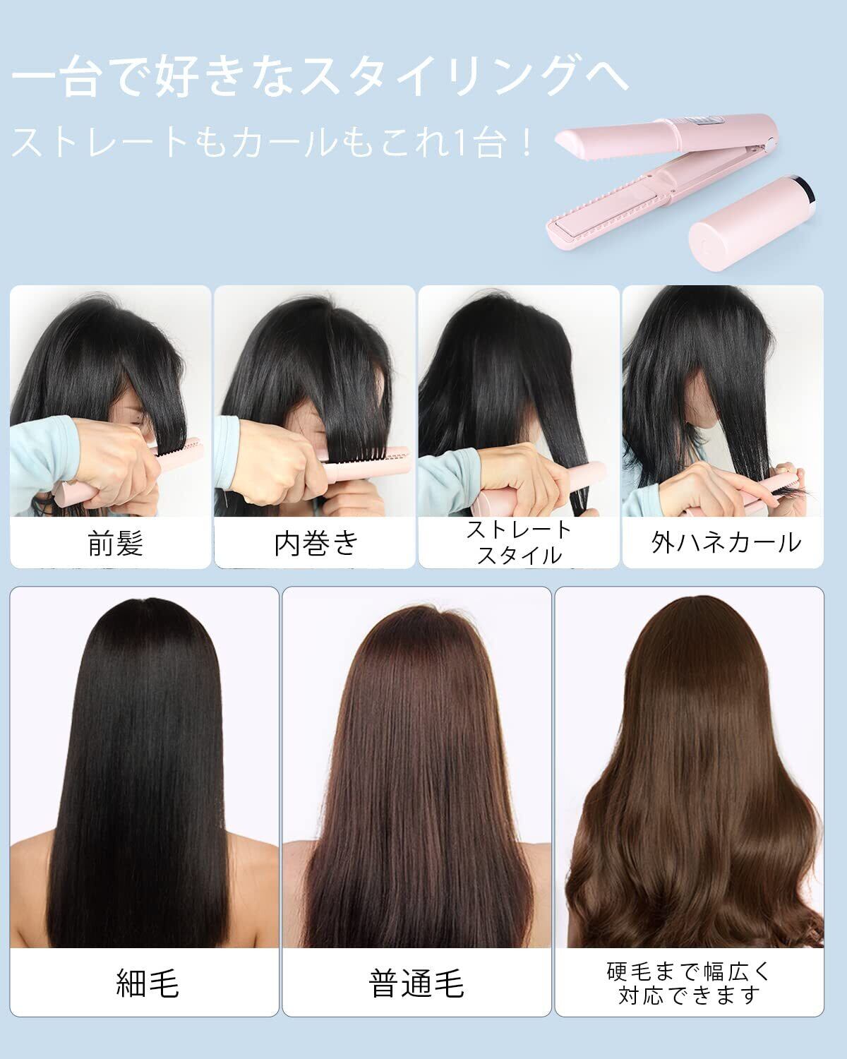 peipai コードレスヘアアイロン type-c充電式ストレートヘアアイロン カールヘアアイロン 2way コードレス ヘアケア 自動オフ機能 プレートロック機能 持ち運び 3段階温度調整 MAX200℃ プレゼント 男女兼用 前髪用 日本語説明書付き