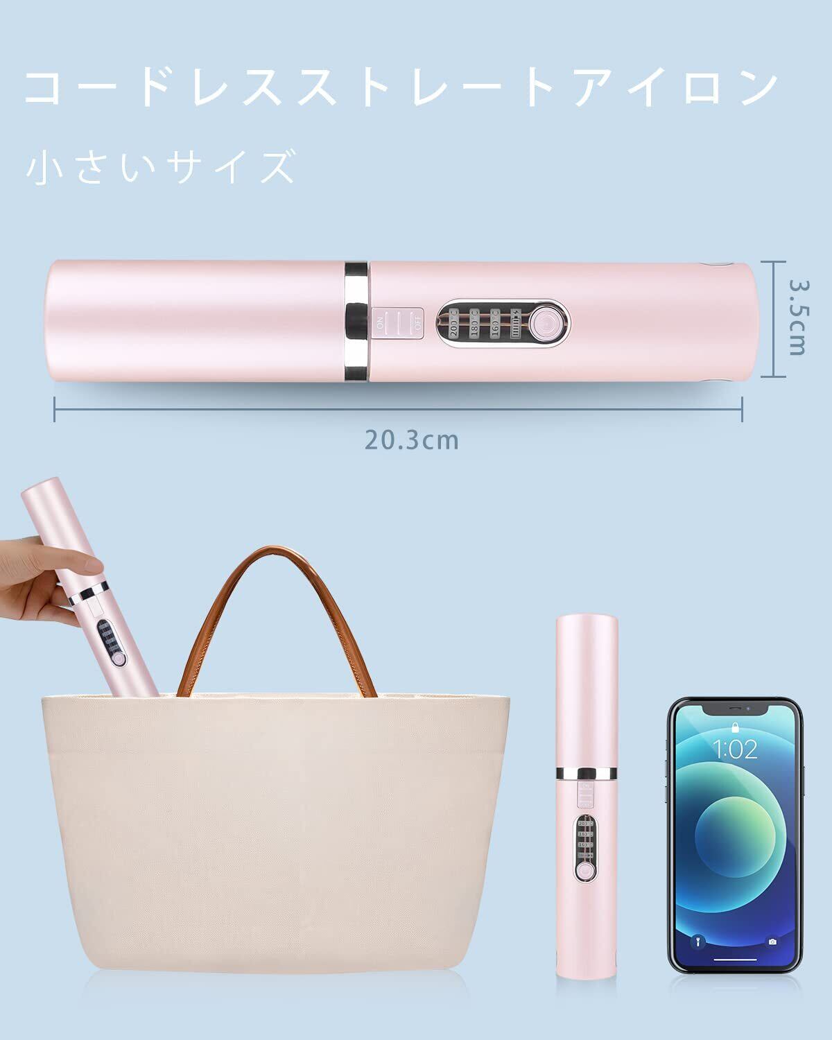 Peipai コードレスヘアアイロン type-c充電式ストレートヘアアイロン コードレス ミニ ストレート カール 2way 3段階温度調整 MAX200℃ コードレス ヘアケア 自動オフ機能 プレートロック機能 持ち運び 母の日 プレゼント 男女兼用 前髪用