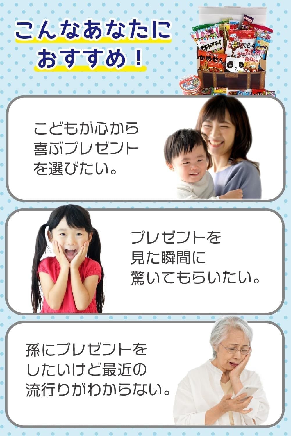 【こんなシーンでおすすめ】パーティーや地域の催し、イベントの景品、誕生日プレゼントや退職や卒業式のばら撒き用に大活躍。お菓子を食べ終わった後は、小物やおもちゃを入れる箱としても利用可能です。もちろん自分用に買っても楽しめます。