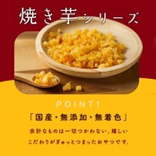 甘みたっぷり、栄養を壊さずにぎゅっと閉じ込めました一度焼き、甘みを凝縮したやきいもをキューブ状にカットして仕上げています。※焼き加減、乾燥の具合により色が黒ずんだものが混じっていることがあります。硬さには違いが生まれますが、品質上問題は御座いません。