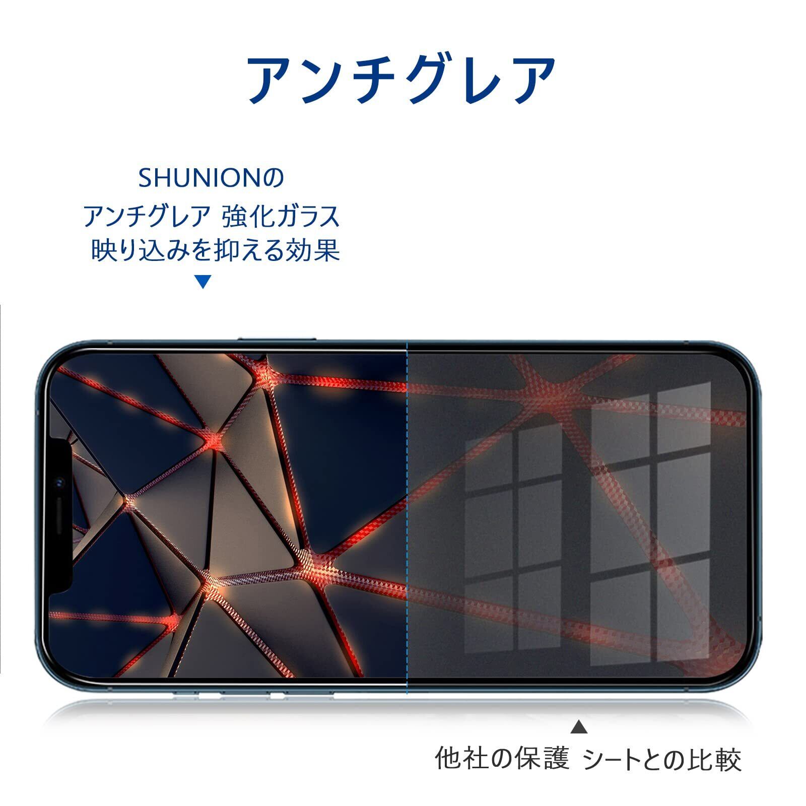 【アンチグレア/つや消し】:iPhone12 アンチグレアがらすフィルムは、映り込み防止処理で蛍光灯や太陽光の反射が下がります。サラサラとした指触りで、化粧品や皮脂などが付きにくくゲーム向きです。