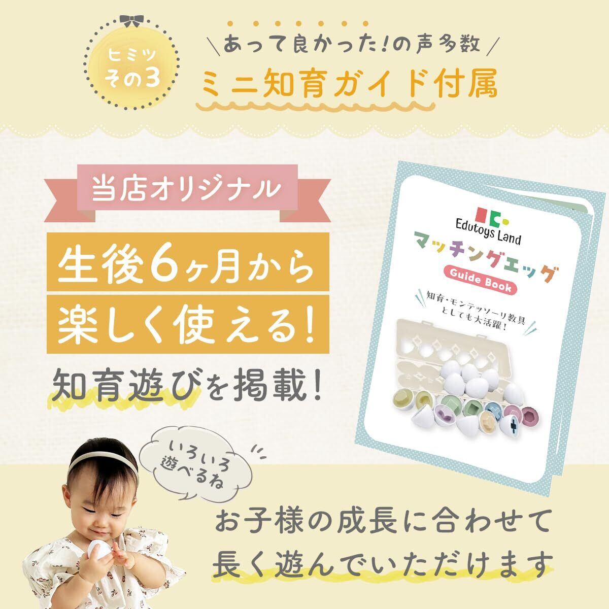 ミニ知育ガイド付属: 効果的な遊び方が分からない親御さんでも安心です。生後6ヵ月から使える遊び方を掲載した当店オリジナルの知育ガイドを付属。長くお使い頂けます。