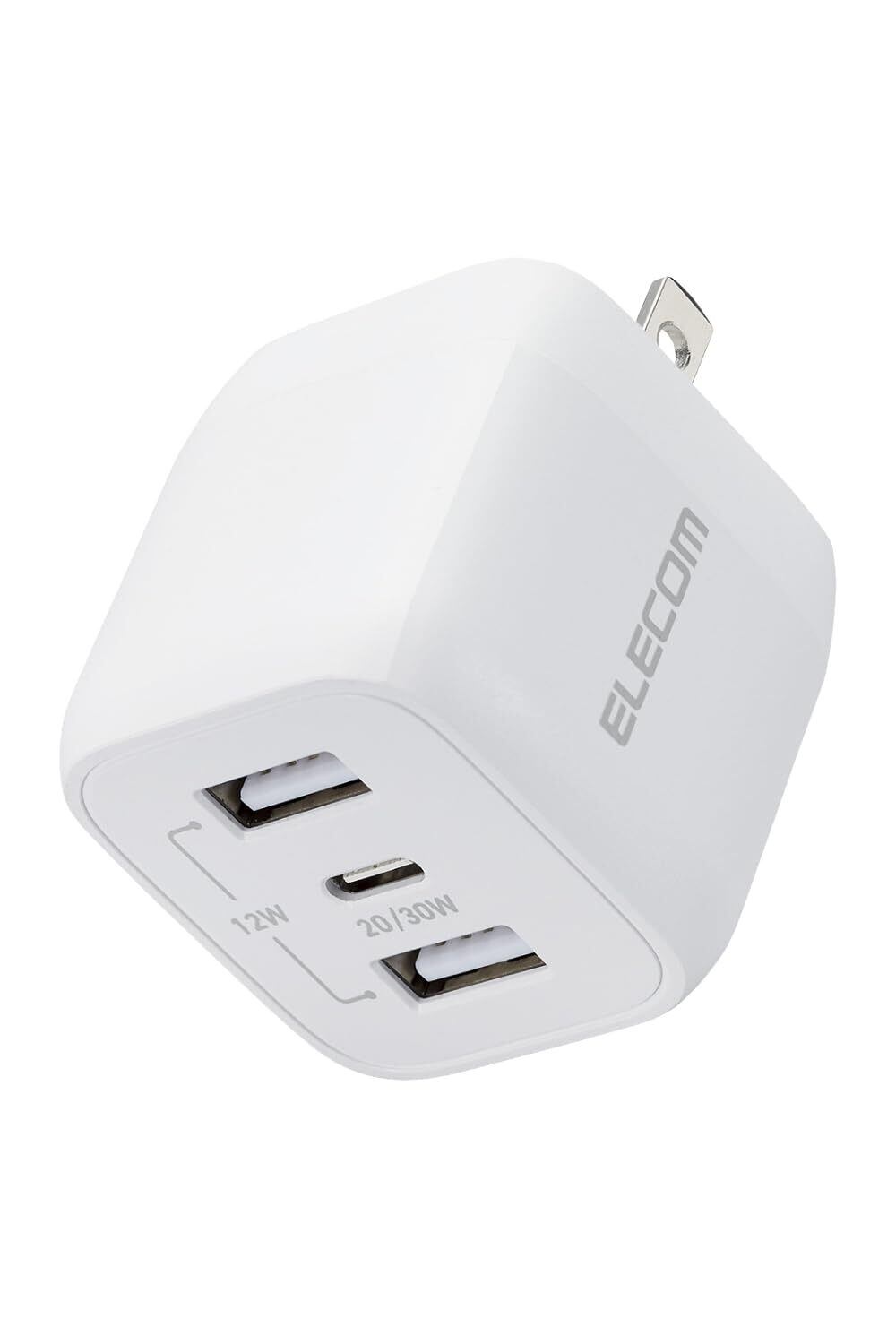 エレコム 充電器 Type-C 3ポート USB-C×1 USB-A×2 32W USB PD対応 折りたたみ式プラグ GaN採用 【 iPhone 16 15 iPad Macbook Air など対応】 ホワイト EC-AC4032WH