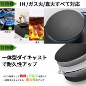 【仕様】直径33cm/重さ約610g。素材:鋳鉄とアルミ合金。詳細はメイン画像をご参考ください。IH、ガス火、直火すべて対応
