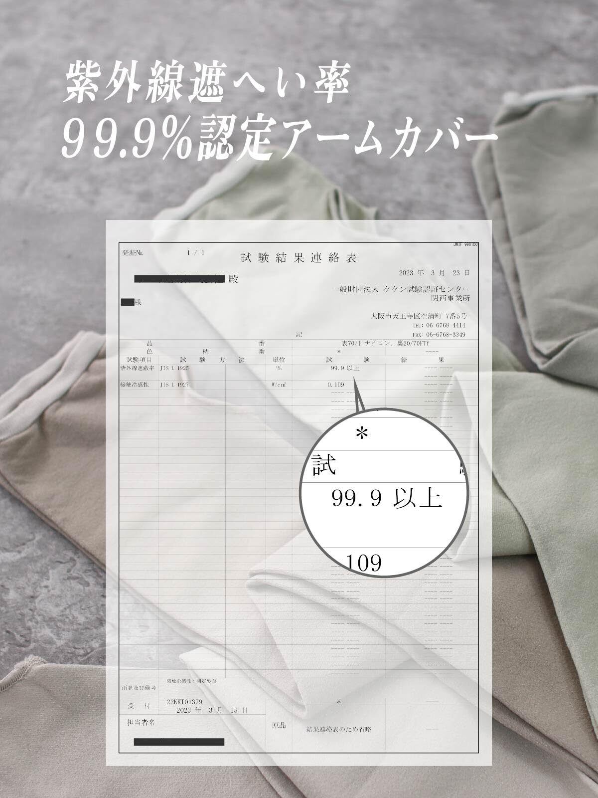 【紫外線遮蔽率99.9%取得】国内検査機関にて紫外線遮蔽率99.9%を取得した日本製のアームカバーです。高い紫外線遮蔽率でありながらも軽量でふんわりとした着心地の、職人のこだわりが詰まった紫外線対策アイテムです。