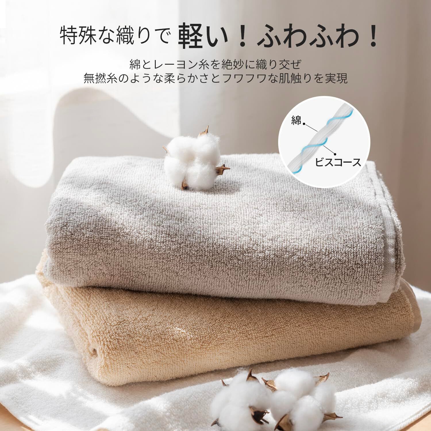 AIFY バスタオル 2枚セット 大判 速乾 ふわふわ 柔らか 綿 毛落ちしにくい 耐久性 厚手 軽量 抗菌 防臭 瞬間吸水 ホテル仕様 無地 髪に優しい 赤ちゃん エステ サロン 一人暮らし 新生活セット ギフト 60×120cm ライトグレー