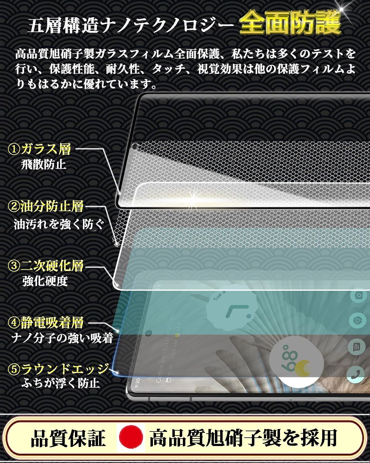 Google Pixel 7 Pro ガラスフィルム 指紋認証対応 Google Pixel 7 Pro 全面保護フィルム 日本旭硝子製素材 9H硬度 指紋防止 飛散防止 気泡ゼロ 干渉しない 貼り付け簡単 グーグル ピクセル 7 Pro 強化ガラス 液晶保護フィルム【6.7インチ-1枚セット】
