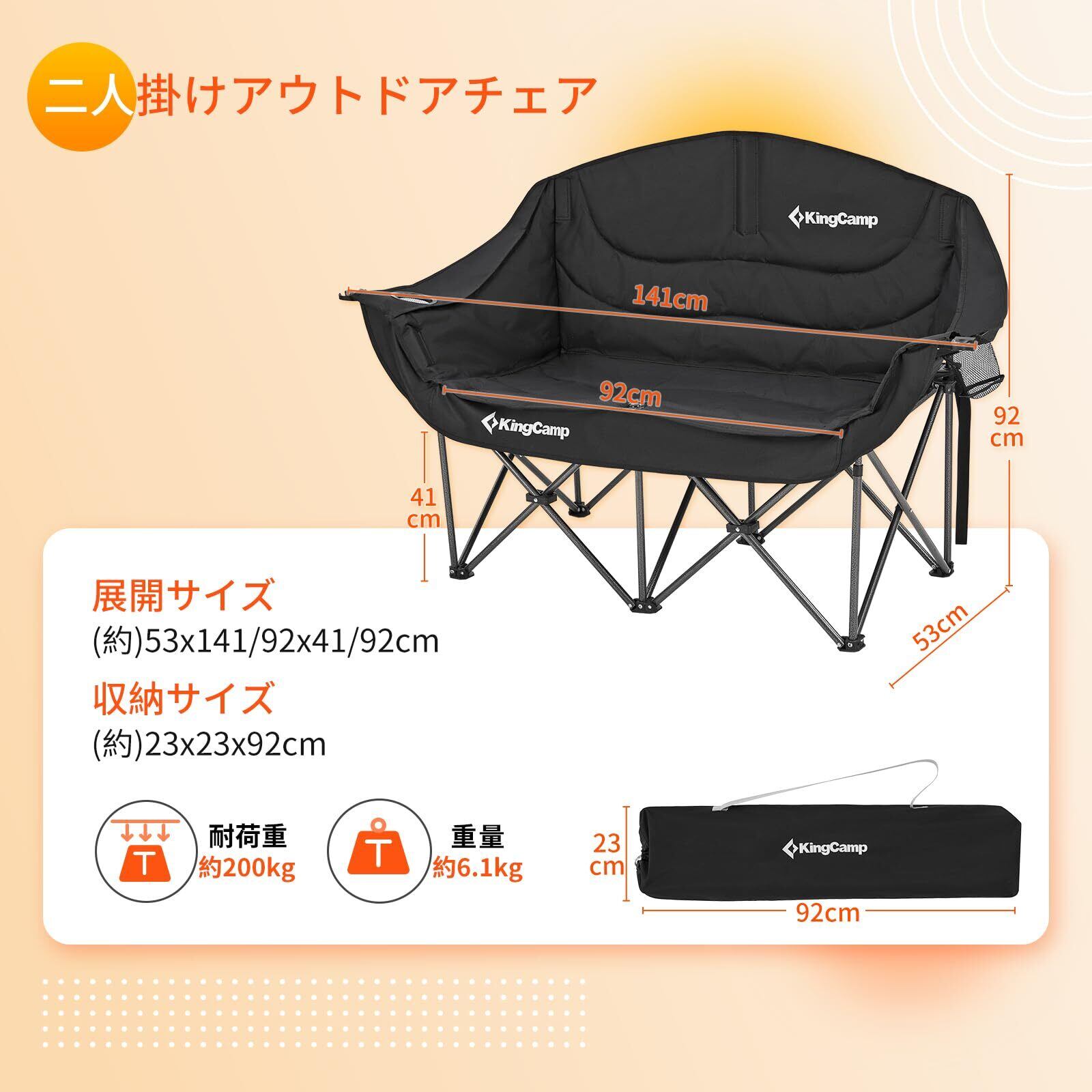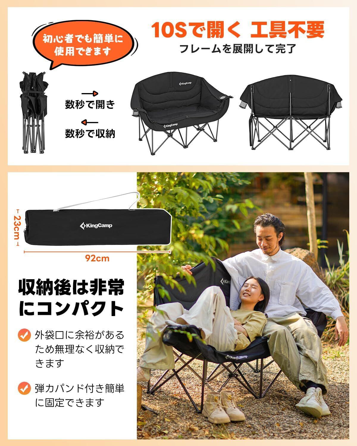 KingCamp アウトドア チェア 二人掛け キャンプ 椅子 2人掛け 折りたたみ式 耐荷重300kg ソファチェア カップルチェア 二人用 収納袋付き 釣り 運動会 ガーデン コンパクト 室内