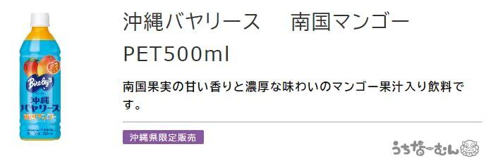 沖縄バヤリース 南国マンゴー PET500ml 12本 +うちなーむんシール