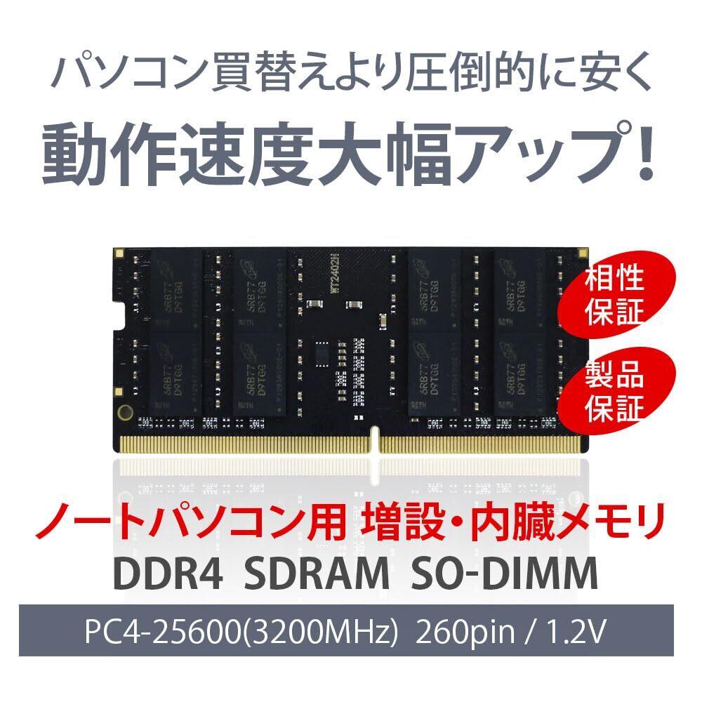 WINTEN ノートPC用メモリ DDR4-3200 64GB(32GB×2枚) 260Pin CL22 1.2V SODIMM SDRAM 内蔵メモリー 増設メモリー【5年・相性】WT-SD3200-D64GB
