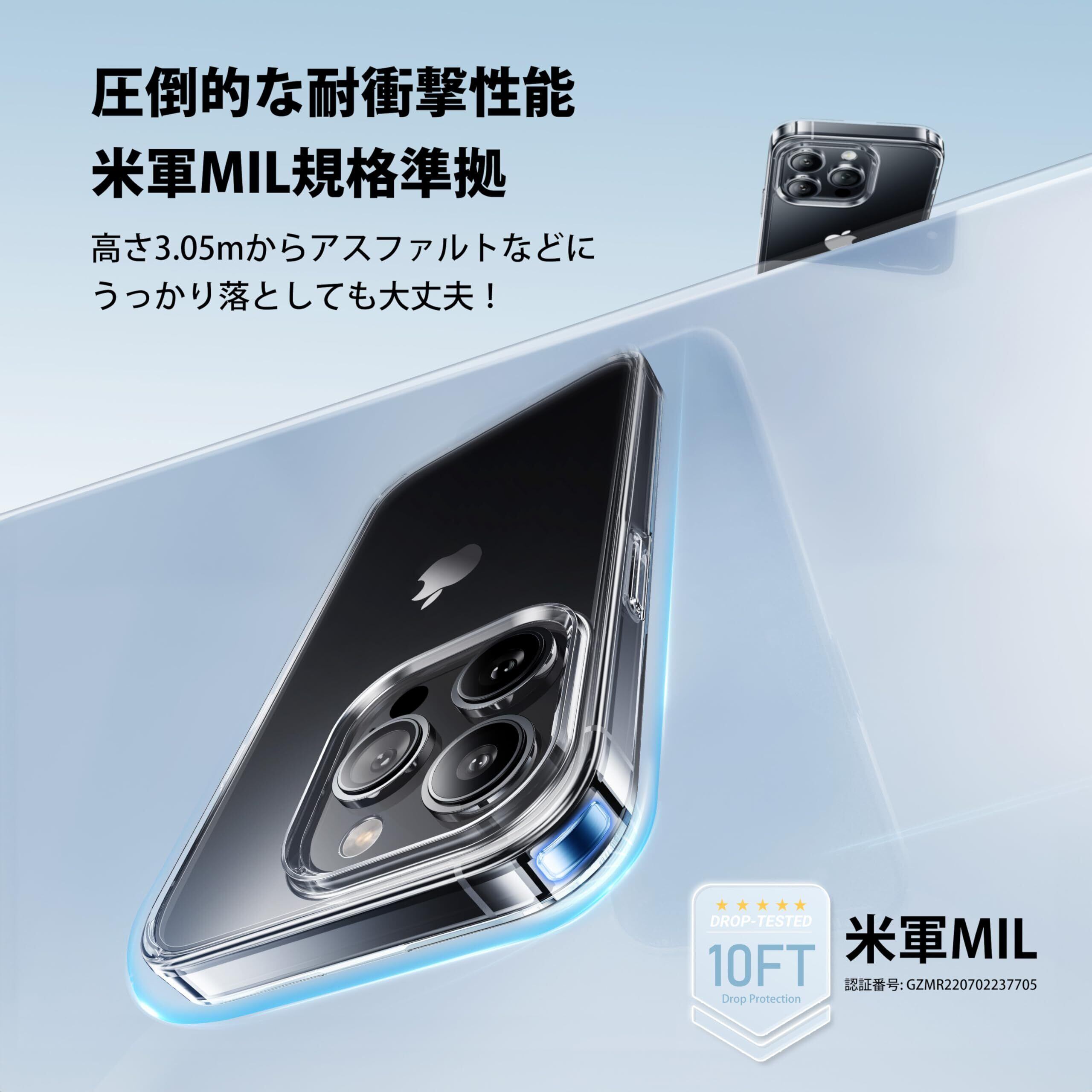 【米軍MIL規格準拠・落下保護力】高さ3.05m、36方向から、4500回以上落下させても尚無傷、鍛えに鍛え上げたタフさを持つ。防弾シールドにも使用され、高硬度・高耐傷性に誇りポリカーボネート素材を厳選。更に三重耐衝撃構造とU-Shockエアクッションは、落下からの衝撃を95%吸収し、保護性能を最大20%向上。米軍MIL規格認証番号:GZMR220702237705|認証機関:CSTC Standards Testing Center|認証時間:Jul 20, 2022