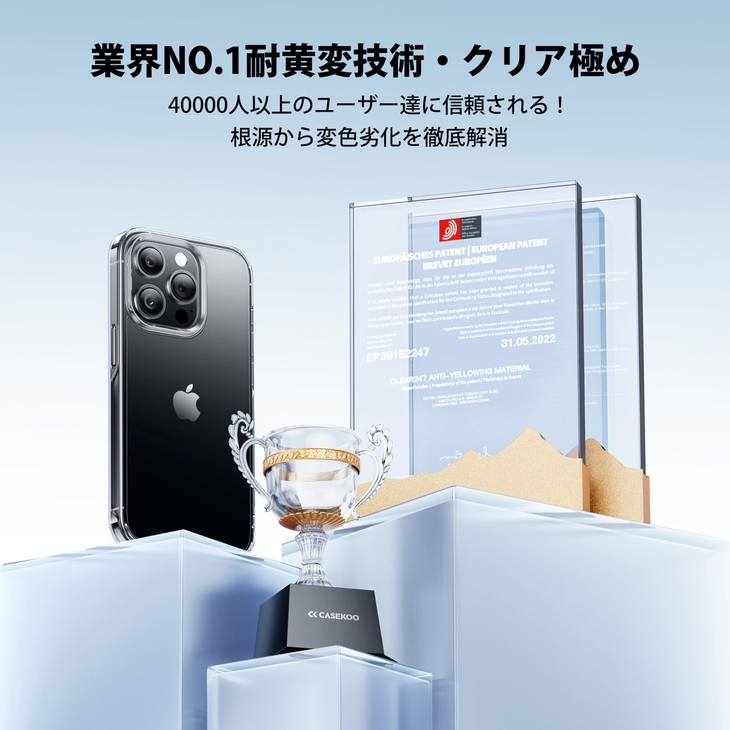 【極々透明感・2025年革新耐黄変技術】CASEKOO iPhone 15 Pro 用 ケース クリア 耐衝撃 米軍MIL規格 ストラップホール付き ワイヤレス充電対応 いPhone15Pro用ケース 6.1インチ アイフォン15Pro 用 ケース「KORI 」クリア