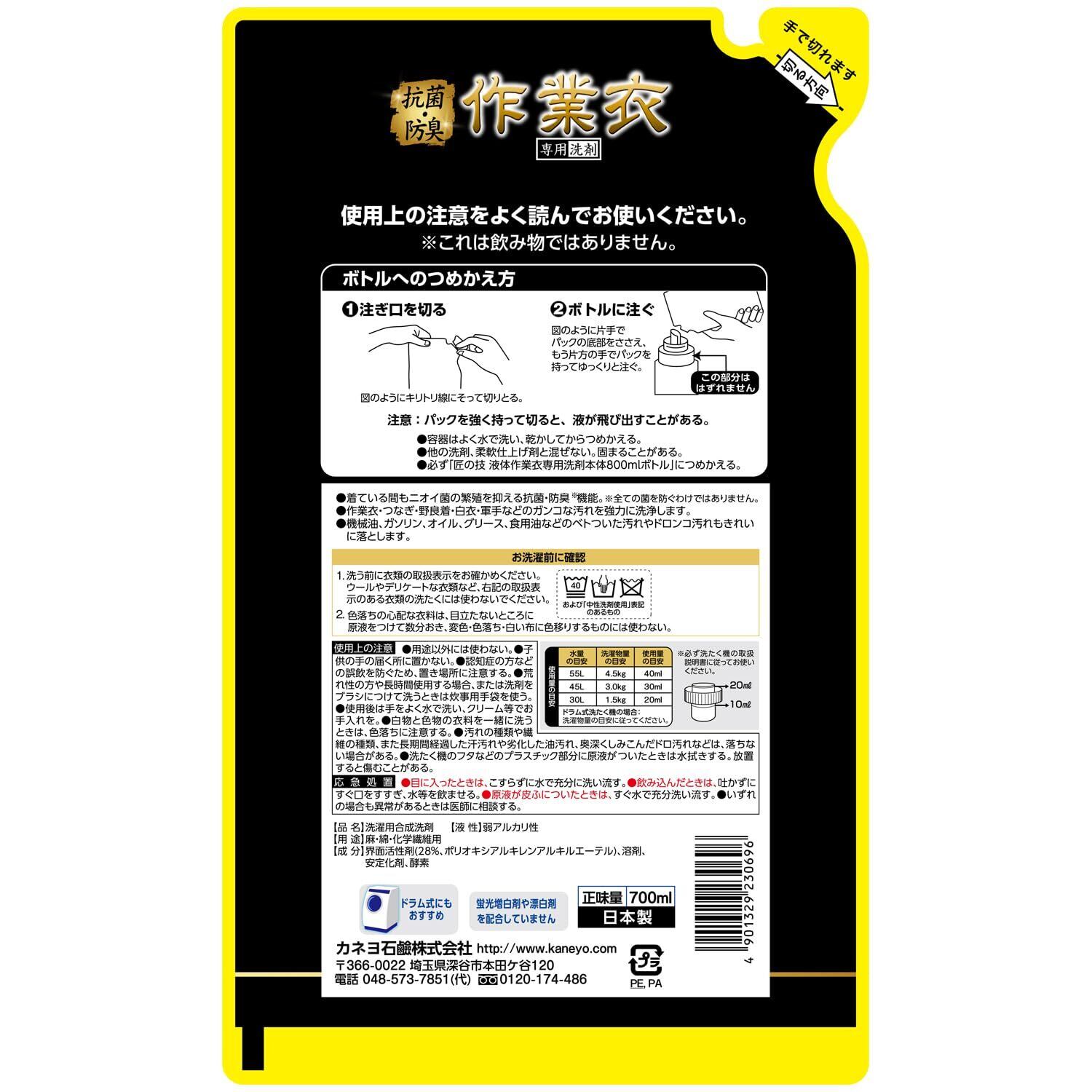 カネヨ石鹸 匠の技 作業衣専用液体洗剤 詰替 700ml 抗菌・防臭 ブルーシトラスの香り 日本製×4個セット