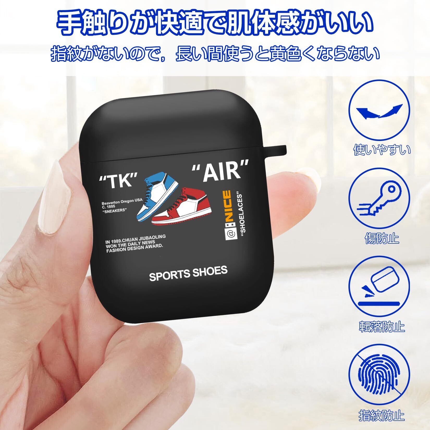 AirPods ケース AirPods第2世代と第1世代に適用 スニーカー TPU ケース 全面保護ケース エアーポッズ カバー 軽量 小型 かわいい 靴 AirPods カバー 耐衝撃 防塵 紛失防止 カラビナ付き(Air-TK-black)