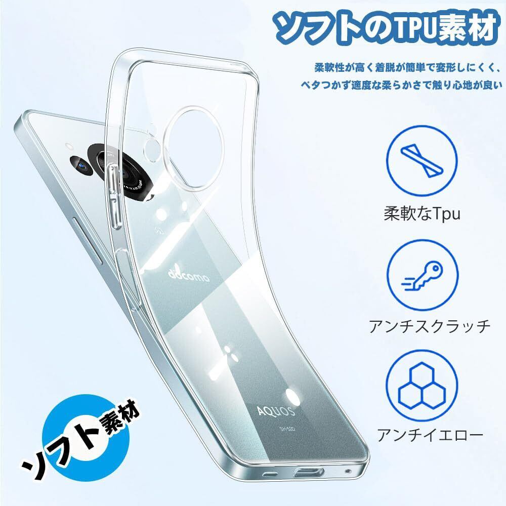 AQUOS R8 ケース SH-52D カバー クリア スマホケース 透明 薄型 耐衝撃 TPU ストラップホール付き アクオス r8 カバー 全透明