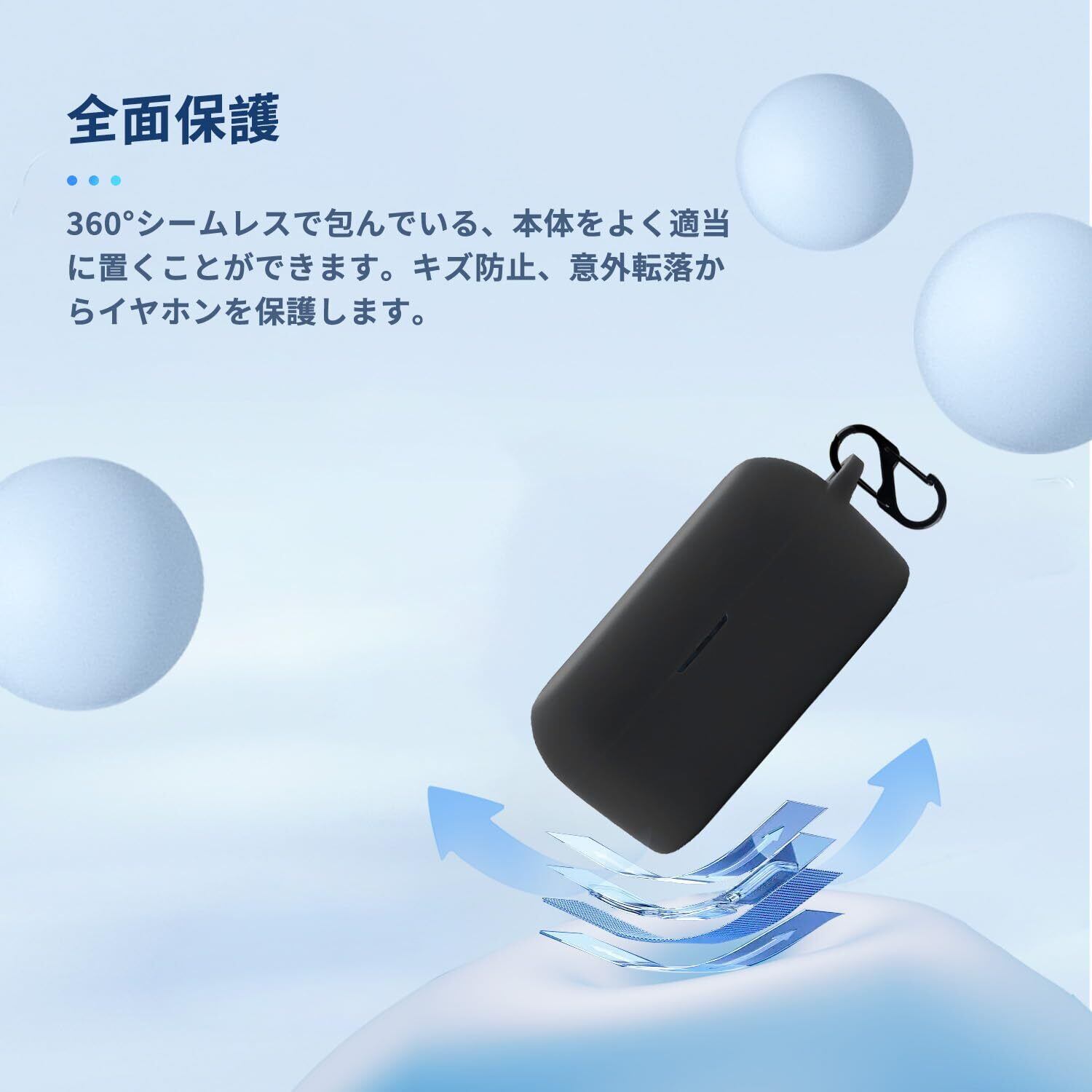 Technics EAH-AZ60 用 ケース カバー 【NOUKAJU】 ワイヤレス イヤーホン シリコン 保護ケース (カラビナ付き+ストラップ付き ) 落下防止 キズ防止 耐衝撃 装着充電可能 防水 防塵 (ブラック)