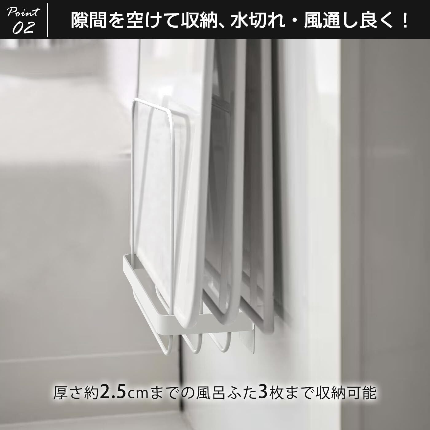 【2タイプの風呂蓋に対応】組み合わせタイプの風呂蓋に加えて、シャッタータイプの風呂蓋も丸めずに広げて収納できるので、カビやぬめりが気になる風呂蓋を快適に収納できます。毎回風呂蓋をどける手間なく、ササッと浴室の床掃除を行えます。簡単に浴室の衛生環境をぐっと向上させられる風呂ふた収納グッズ。
