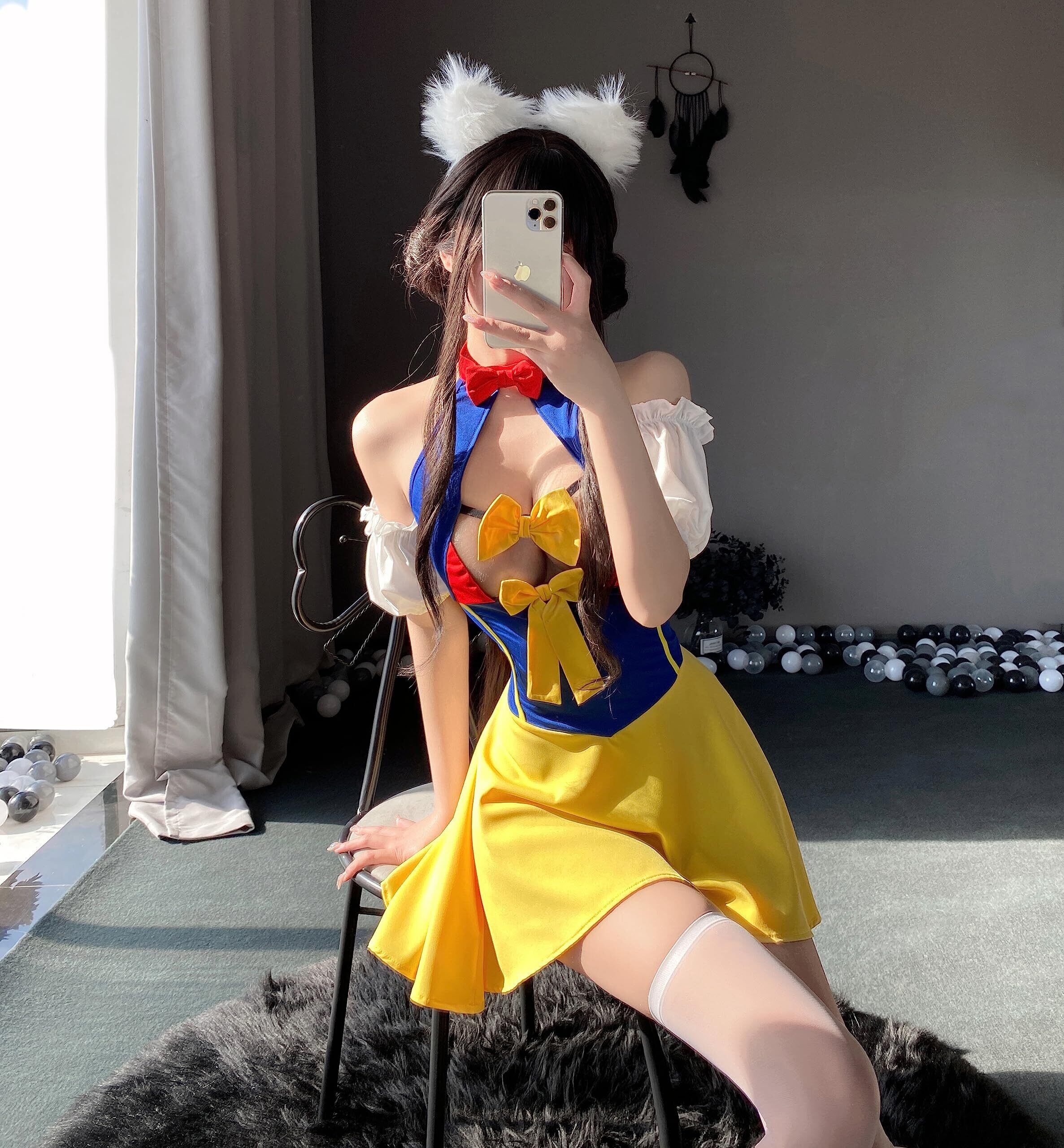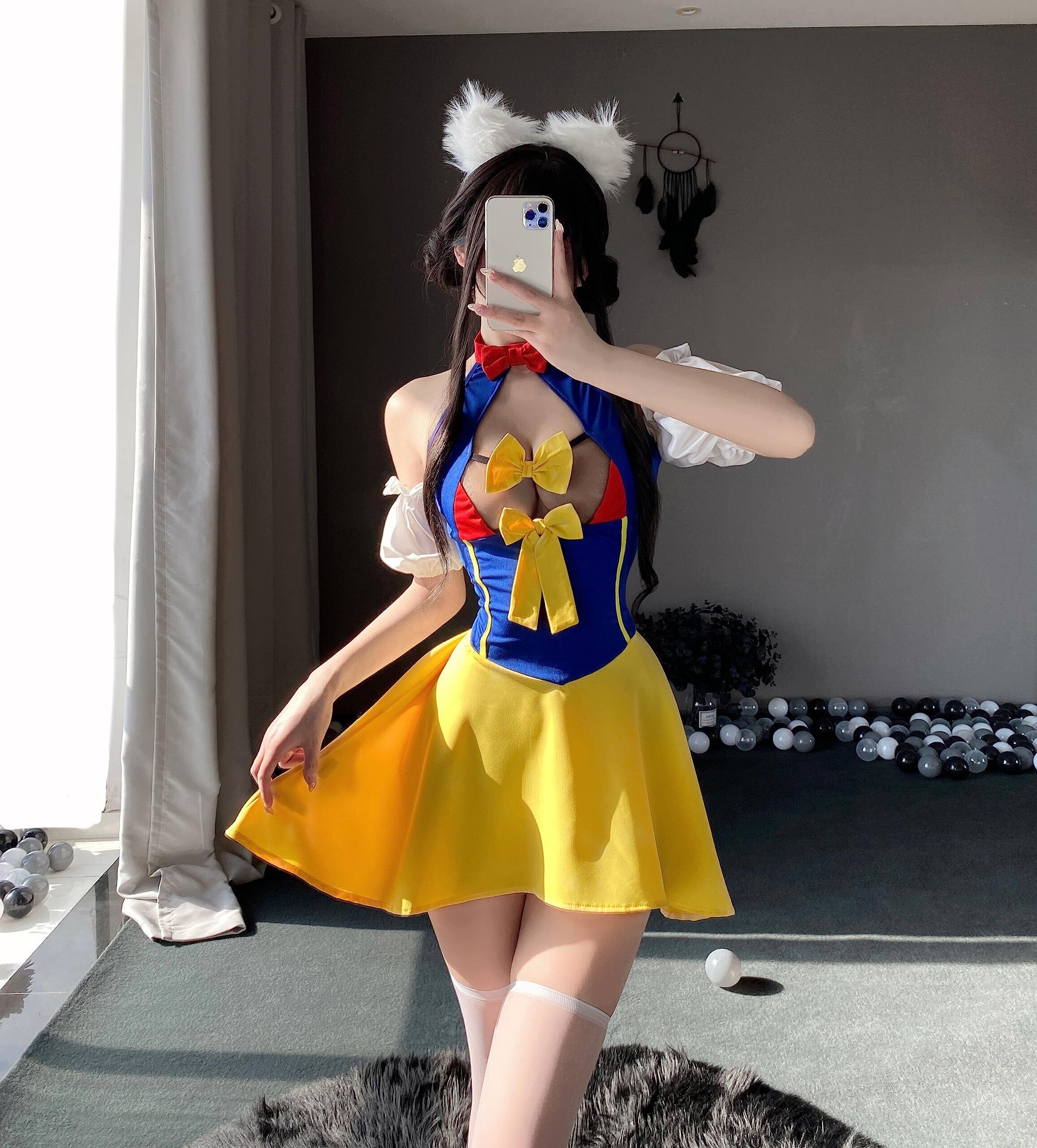 【白雪姫コスチューム】このセクシーコスチュームは、プリンセスドレスの甘さとメイド服の誘惑を完璧に融合させ、身体のラインにぴったりとフィットする仕立てで自然なエレガンスを演出します。透け感のあるレース素材がほのかに肌を覗かせ、情熱的でミステリアスな魅力を放ちます。繊細なレースの縁取りとリボンの装飾が上品さをプラスし、柔らかく伸縮性のある生地で快適な着心地を実現。ロマンチックなムードを盛り上げるデートや特別なシーンでの使用に最適で、女性の唯一無二の魅力を引き出します。