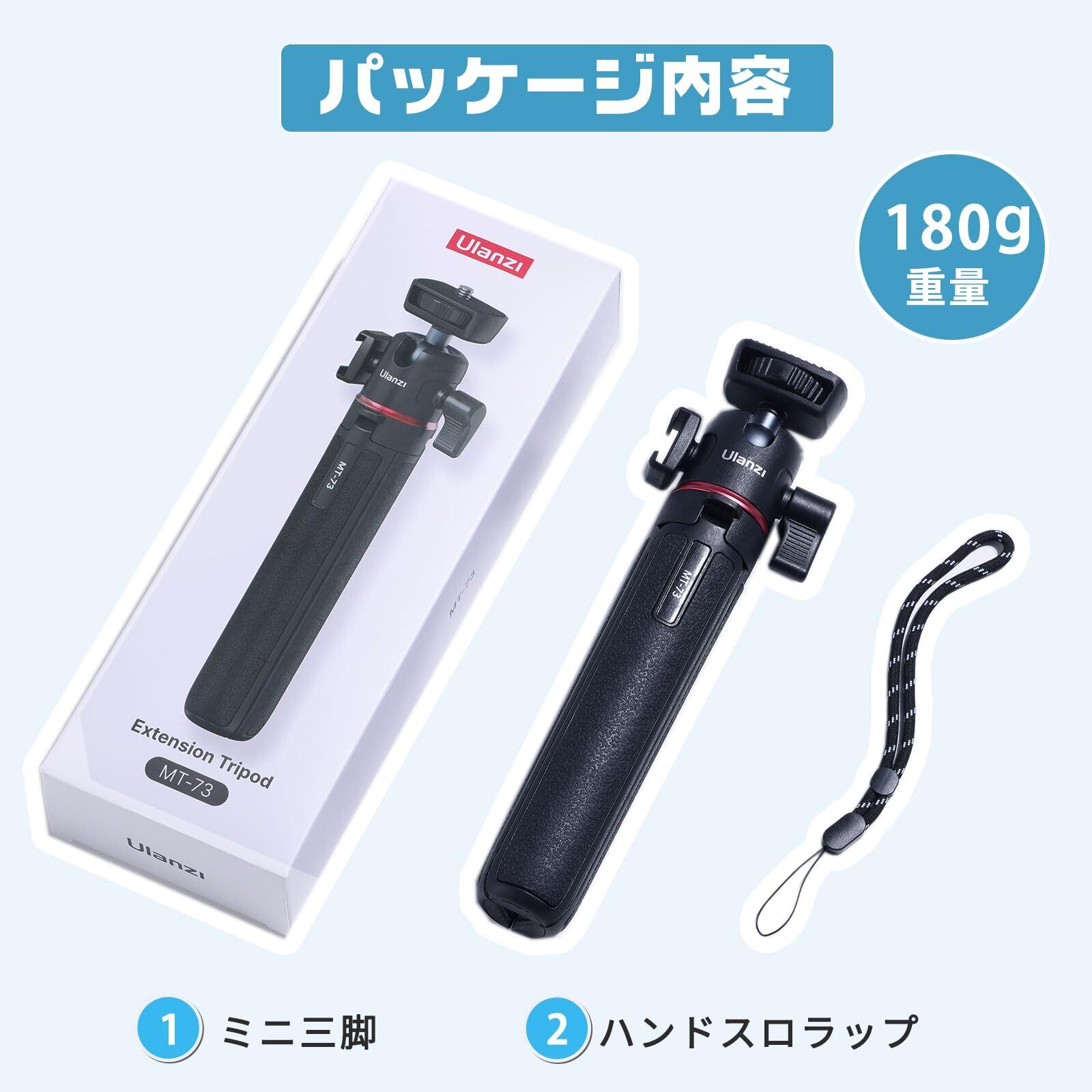 Ulanzi MT-73 ミニカメラ三脚 4段伸縮 自撮り棒 コールドシュー付き 卓上三脚 360度自由雲台 スマホ三脚 1/4ネジ穴 持ち運び便利 vlog ビデオ セルカ棒 ストラップ付き Sony/Canon/Nikon/Android/iPhone/アクションカメラなどに対応