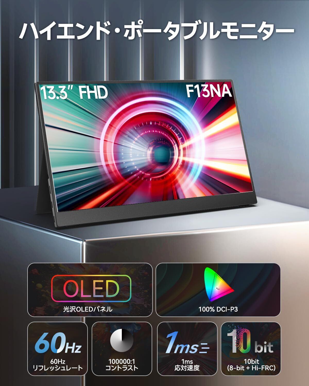 Intehill モバイルモニター 有機el モニター 13.3インチ OLEDパネル自発光 1920x1080 10Bit DCI-P3 100% 高輝度ディスプレイ 100000:1 HDR対応 ゲーミングモニター USB Type-C HDMIポート搭載 Switch モニター F13NA