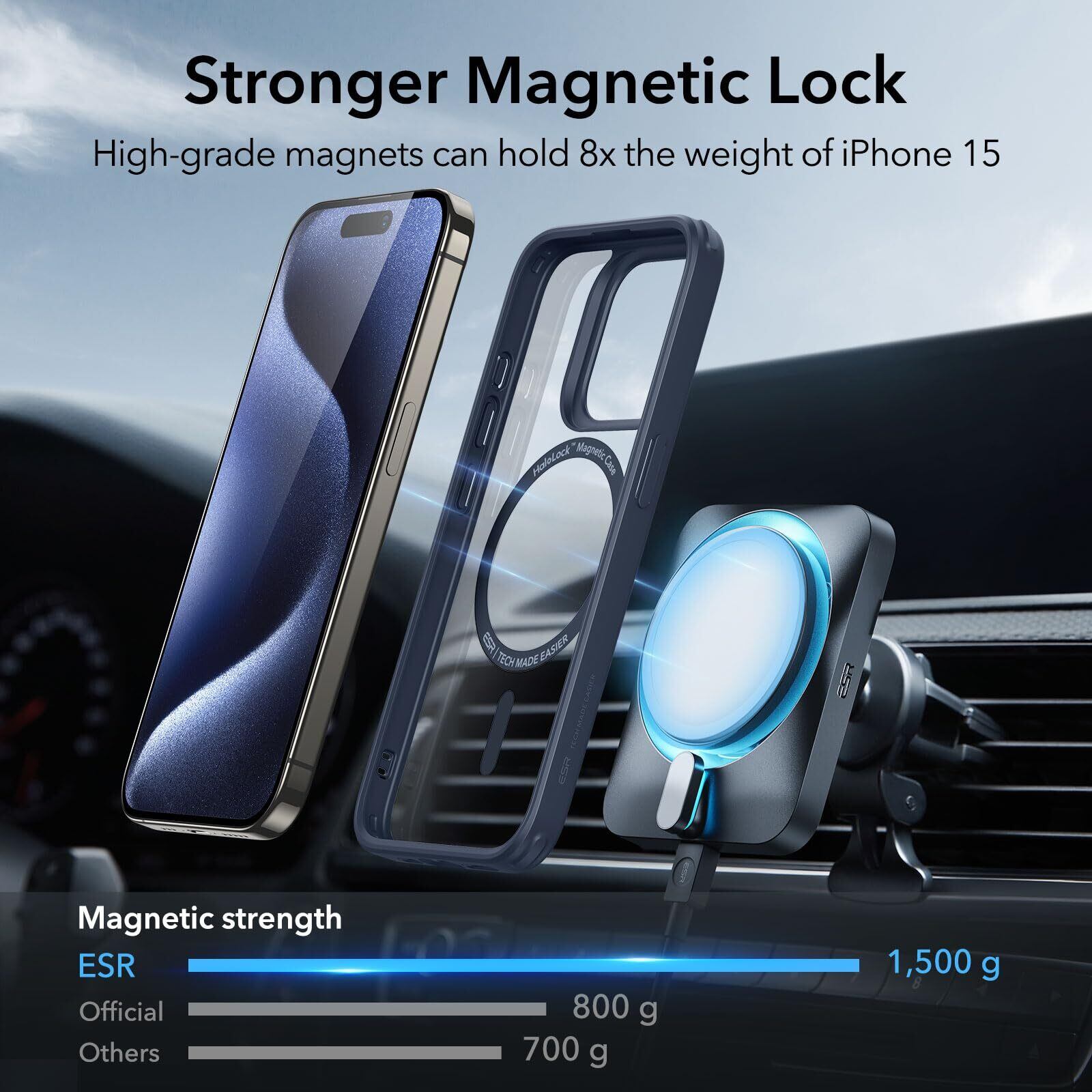 【より強力な磁気吸着】1,500 gの吸着力を持つ強力な内蔵磁石により、素早く簡単にワンタッチでワイヤレス充電が可能で、MagSafeアクセサリーを確実に吸着します。
