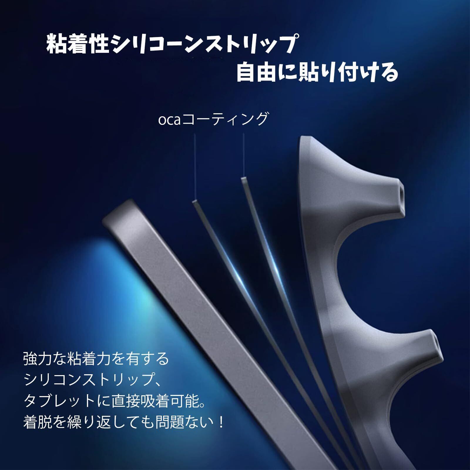 【強力な粘着性シリコンストリップ、自由に取り付け】新しいタイプの粘着性シリコンストリップを採用し、両面テープを使用する必要がなく、タブレットに直接貼り付けることができ、取り外すときも見苦しいゴム痕が残らず、便利でiPadやダブレットにダメージを与えません。同時に、自分の手の形と好みに合わせて、貼り付け位置はいつでも調整できる同時に、ズレ心配がありません。本当に「手の自由」を実現しました。