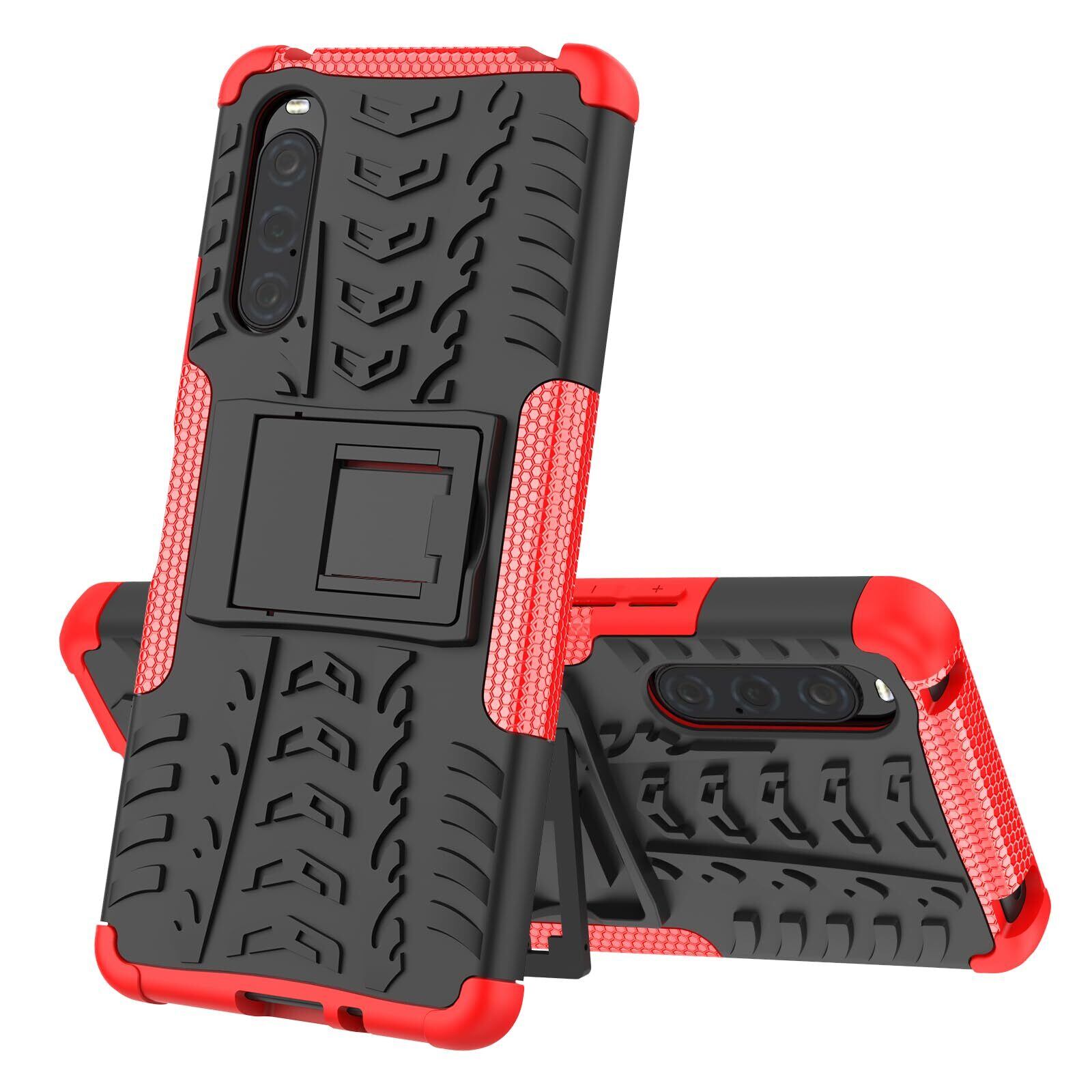 Xperia 10 V ケース SO-52D/ SOG11 背面カバー Sony Xperia 10 V ケース 人気 Pelanty 横置きスタンド機能 TPU&PC 二重構造 バンパーケース ソニー エクスペリア 10v so52d スマホケース 全面保護 携帯電話カバー 便利 実用 耐衝撃 レッド