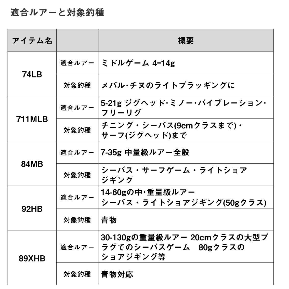 【ルアー重量(g)】: 14-60【適合ラインPE(号)】:1.5-3.0