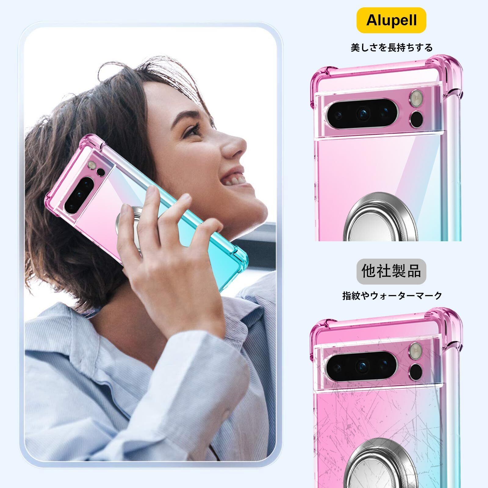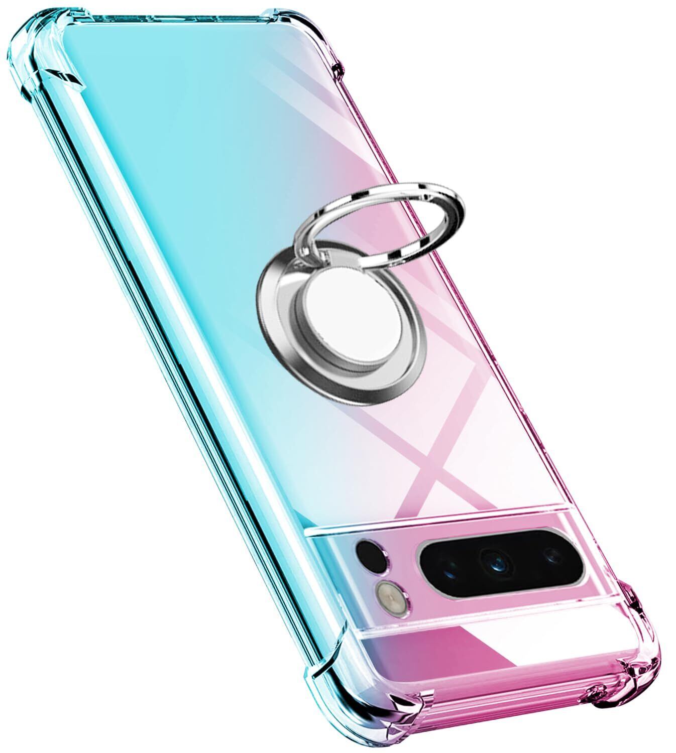 Google Pixel 8 Pro ケース リング TPU 薄型 軽量シリコン グラデーション色 ケース 耐衝撃 指紋防止 車載ホルダー対応 防塵 一体型 人気 携帯カバー(ピンクグリーン)
