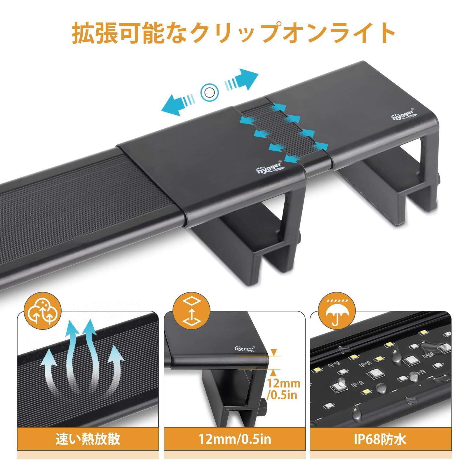 hygger 水槽ライト LED 45-60cm水槽対応 6タイマー付き 昼6/8/12時間 夜3/5/12時間 24/7自然モード 熱帯魚 観賞魚 水草用 フルスペクトル水槽ライト 自動オン/オフ 明るさ調節可能 スイッチ 淡水適応 伸縮可能 18W