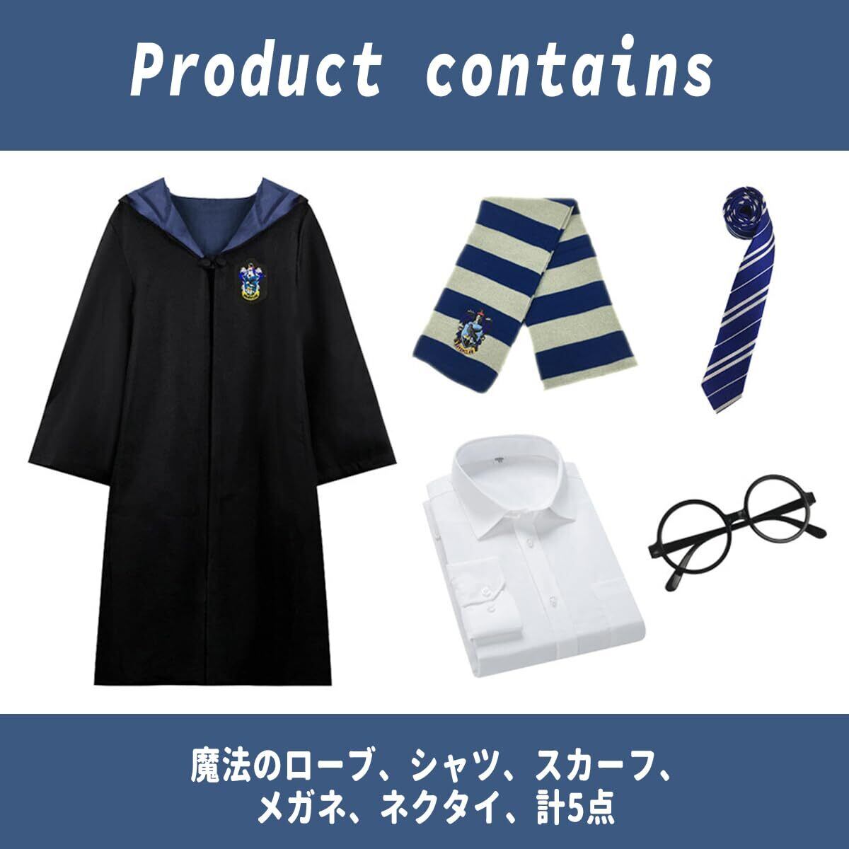 [SYRHSYB] ハリー?ポッター ハロウィンコスプレ衣装 5点 セット コスチュームセット 仮装 変装 ハロウィン cosplay パーティー衣装 ハリポタ マント ローブ マフラー ネクタイ Tシャツー メガネ 学園祭 文化祭 学園 魔法 小物セット付