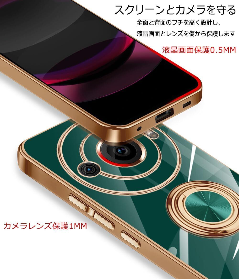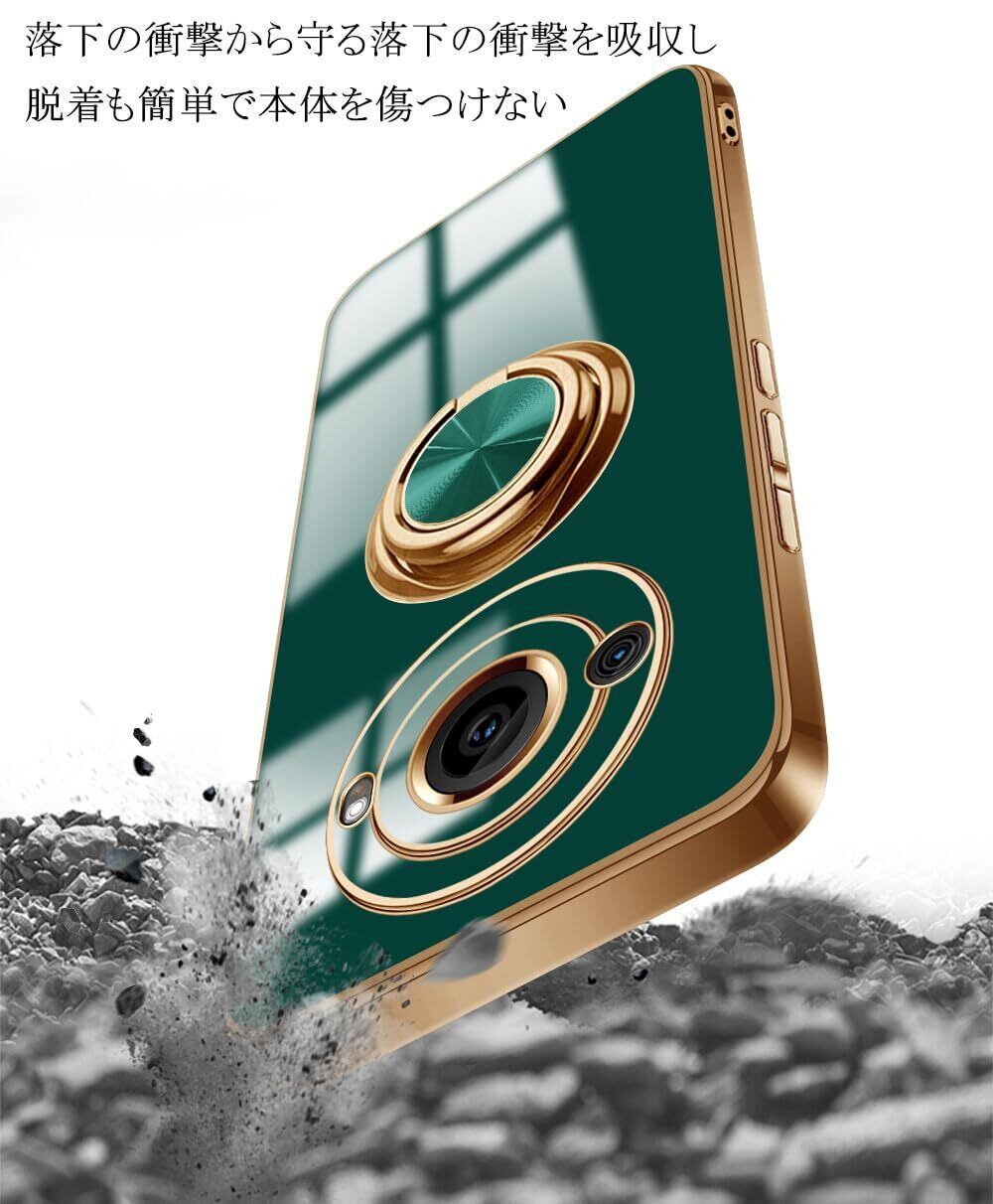 SHARP AQUOS R8 Pro/徕卡 Leitz Phone 3 ケース リング付き AQUOS R8s Pro ケース Aquos SH-51D ケース 耐衝撃 アクオス R8 Pro カバー スマホケース 軽量 薄い TPU スタンド機能 擦り傷防止 落下防止 車載ホルダー対応 ストラップホール付き( グリーン)