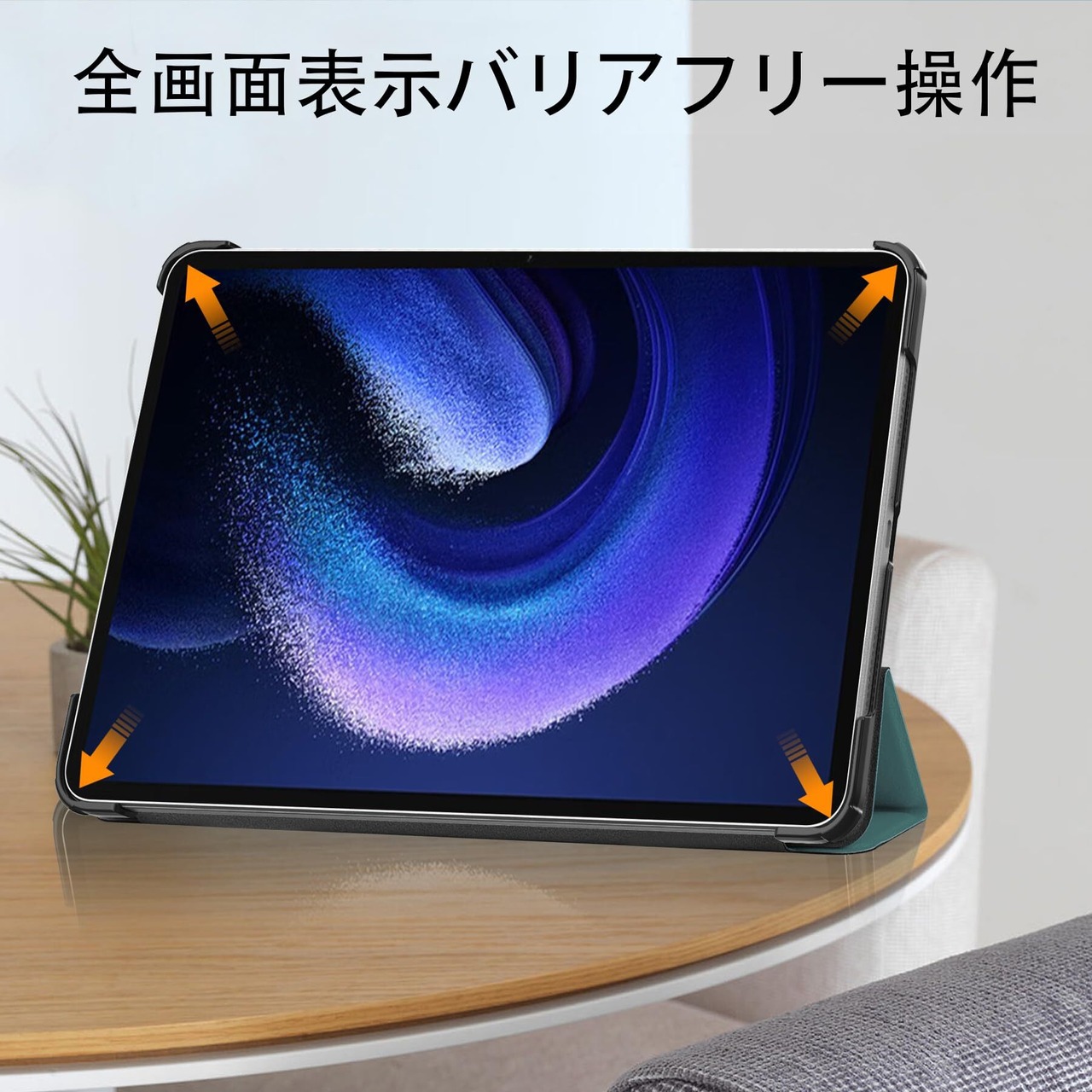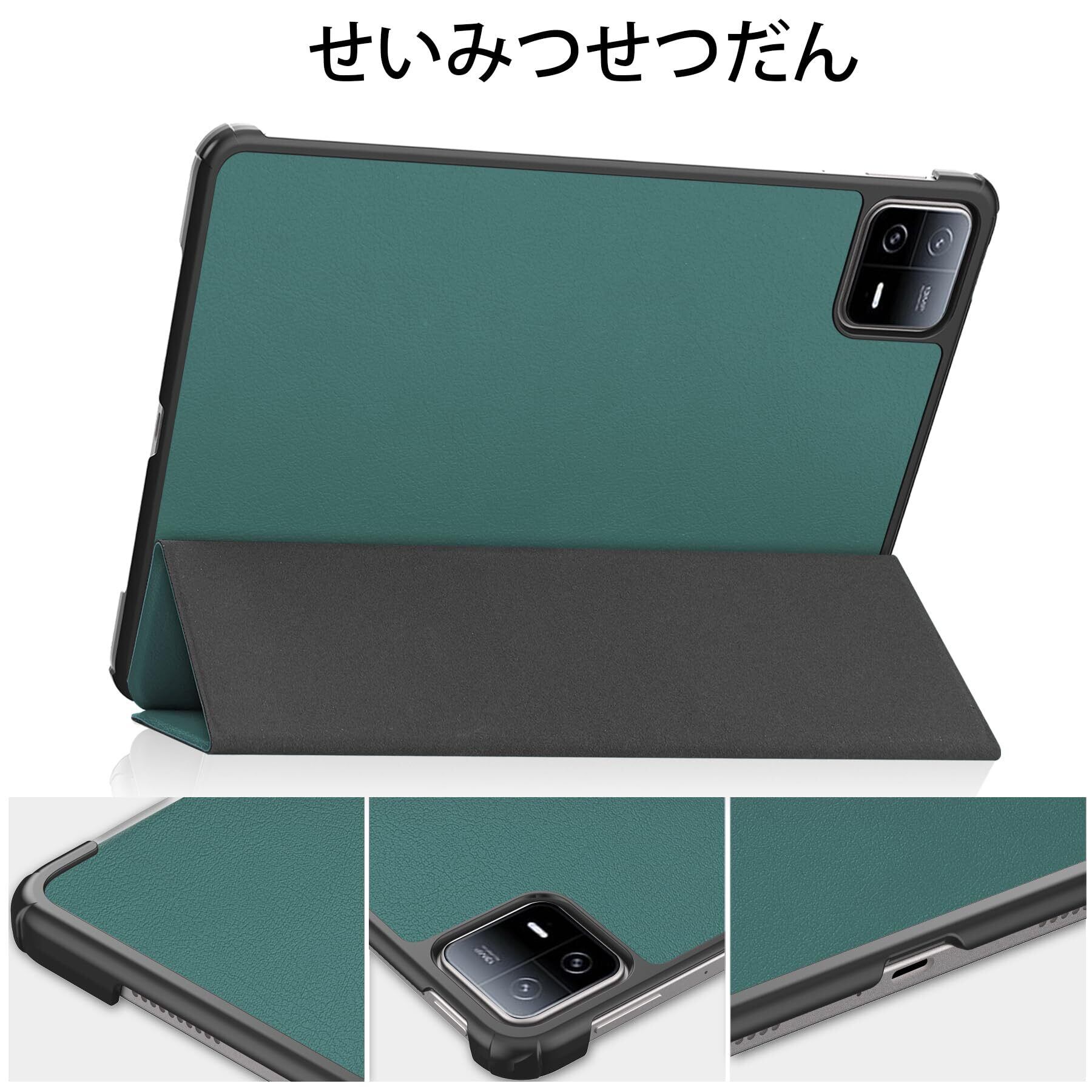 FOR Xiaomi Pad 6 11インチ 用の 三つ折ケース 手帳型 スマートケース マグネット内蔵 オートスリープ機能 FOR Xiaomi Pad 6 11インチ 用の PUレザーカバー スタンド機能付き 衝撃吸収 軽量 薄型 全面保護 PCduoduo (濃い緑)