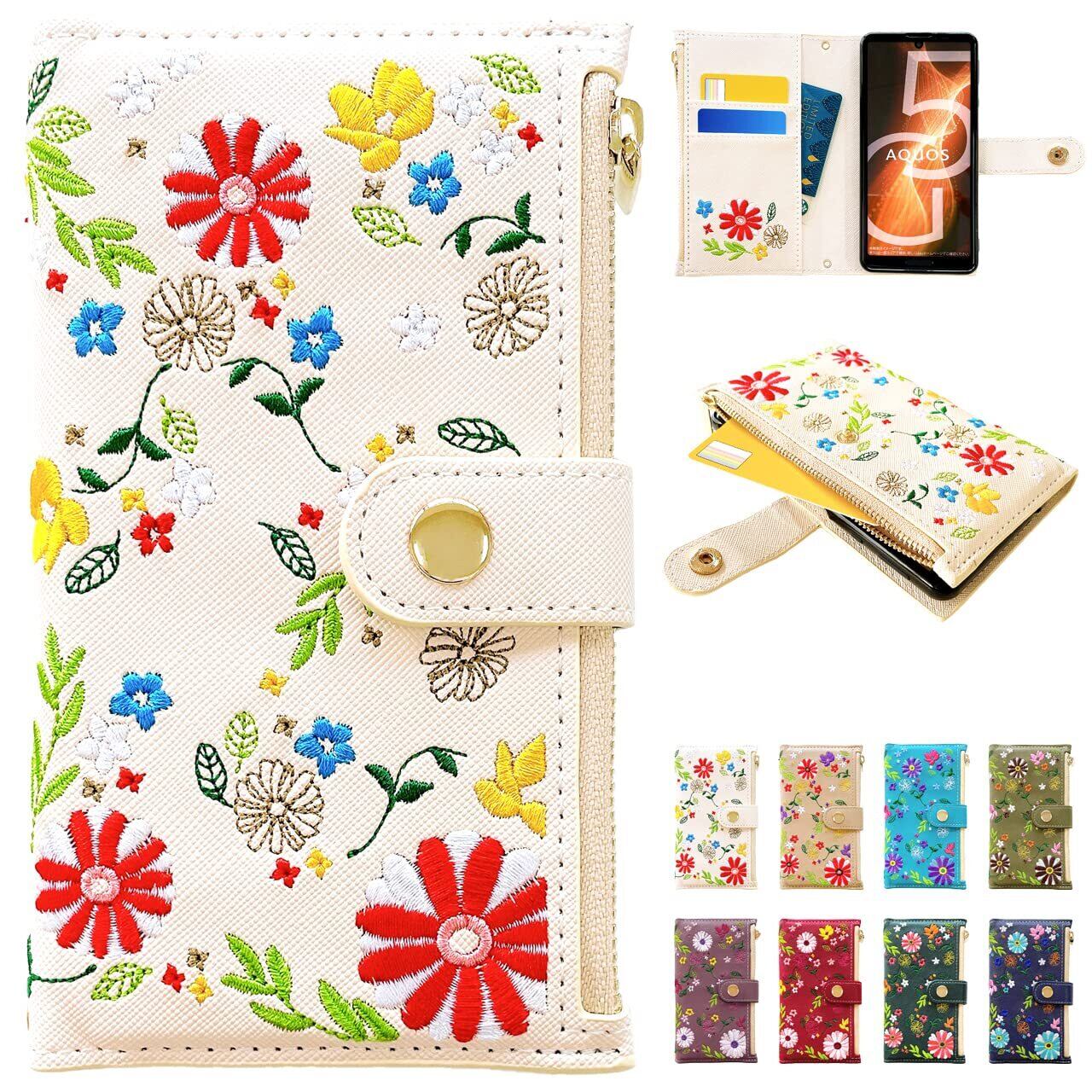 AQUOS sense7 SH-53C SHG10 SH-M24 用 ケース 手帳型 カバー 手帳型ケース SH53C sense 7 SH-53Cケース SH-53Cカバー SH-53C手帳型 SHG10ケース SHG10カバー SHG10手帳型 スマホケース スマホカバー おしゃれ花刺繍 アイボリー