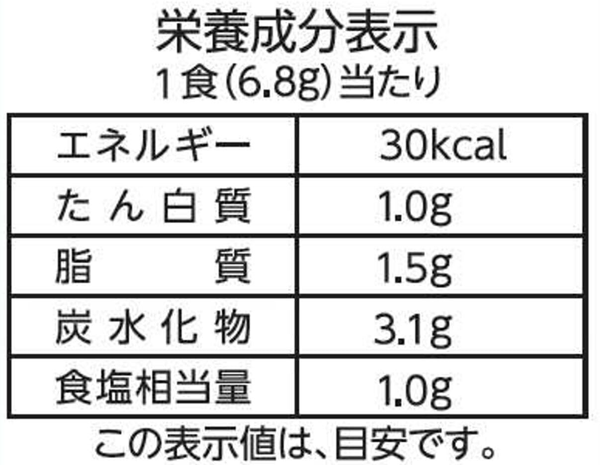 【商品詳細】内容量:6.8g×5食×6個 / 商品サイズ:高さ13.6×奥行26.0×幅23.5cm / 栄養成分 (1食6.8g当たり):エネルギー30kcal、たん白質1.0g、脂質1.5g、炭水化物3.1g、食塩相当量1.0g / メーカー名:東洋水産株式会社