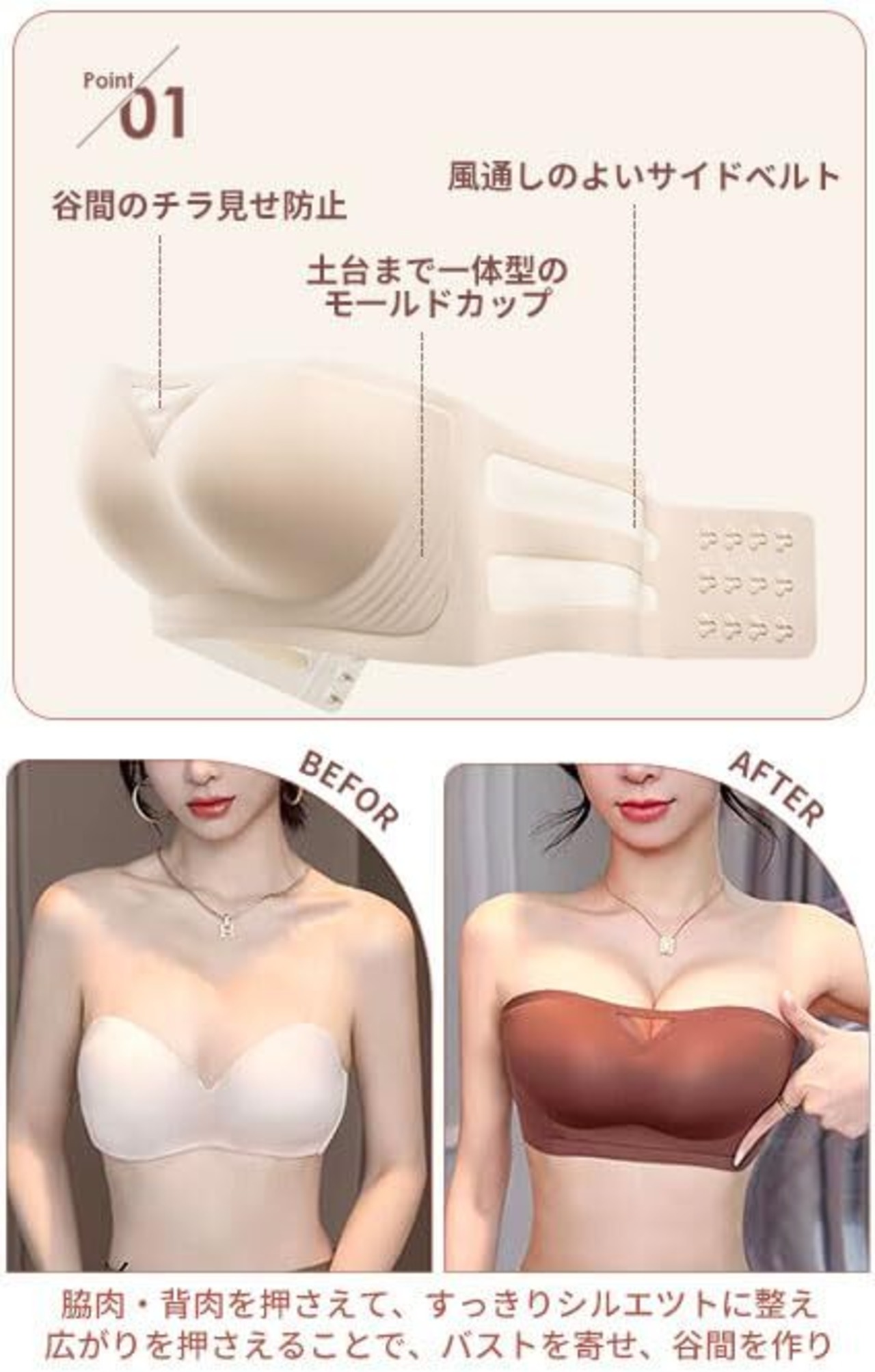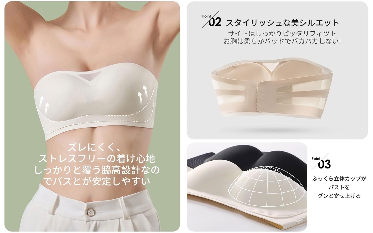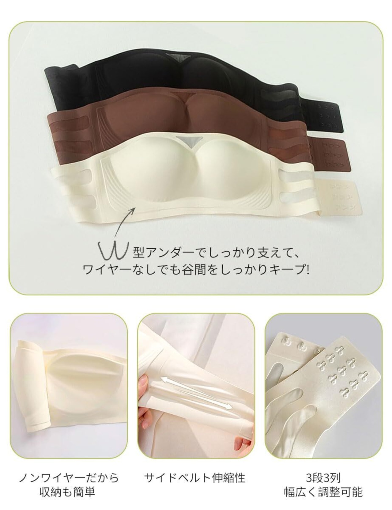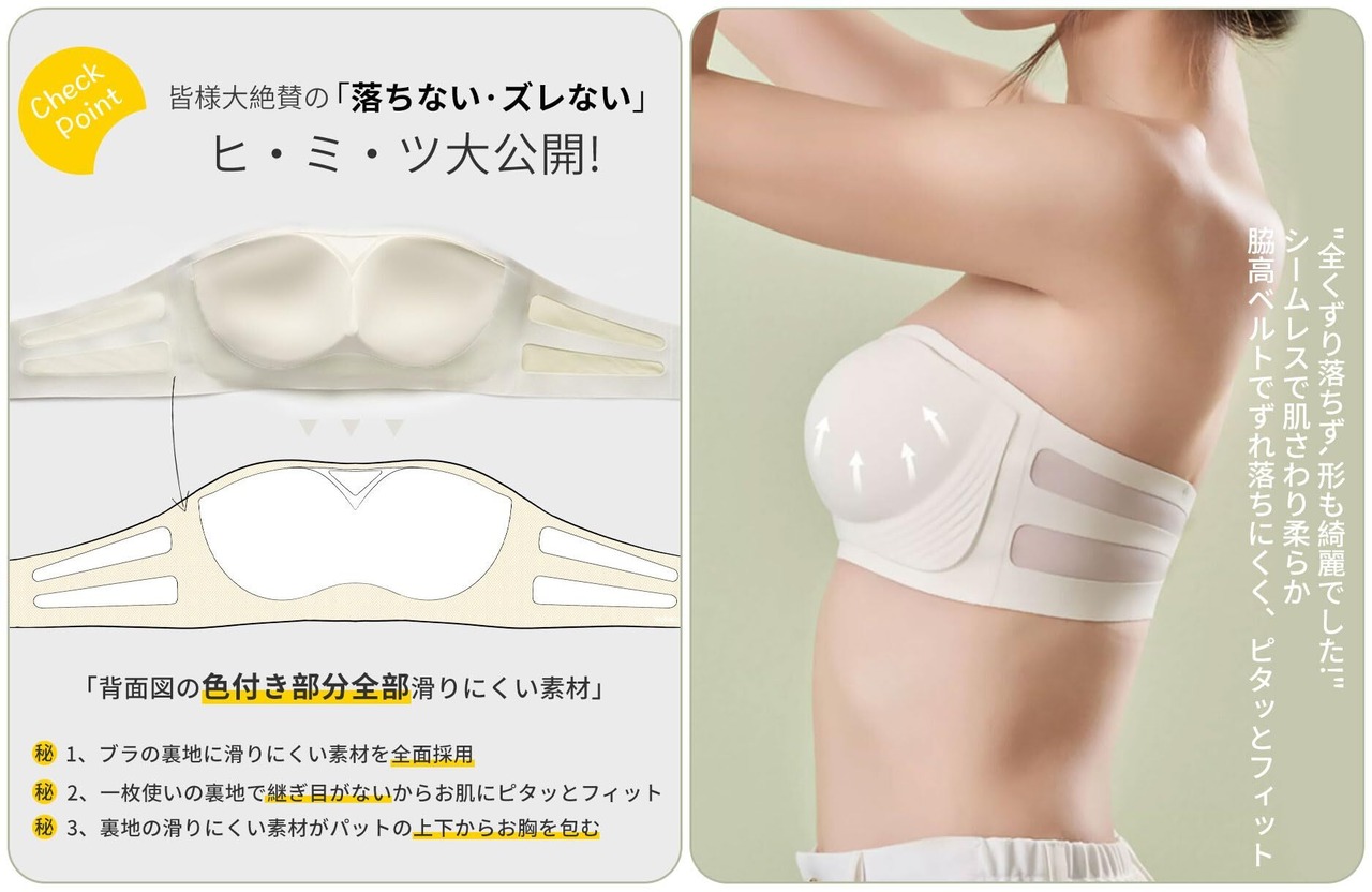 [Yuninya] ストラップレスブラ 紐なしブラ チューブトップ 落ちない 盛りブラ 脇高 ノンワイヤー シームレスブラ ベアトップ カップ付 ドレス用 結婚式 ブラジャー バストアップ 肌に優しい 締付け感なし