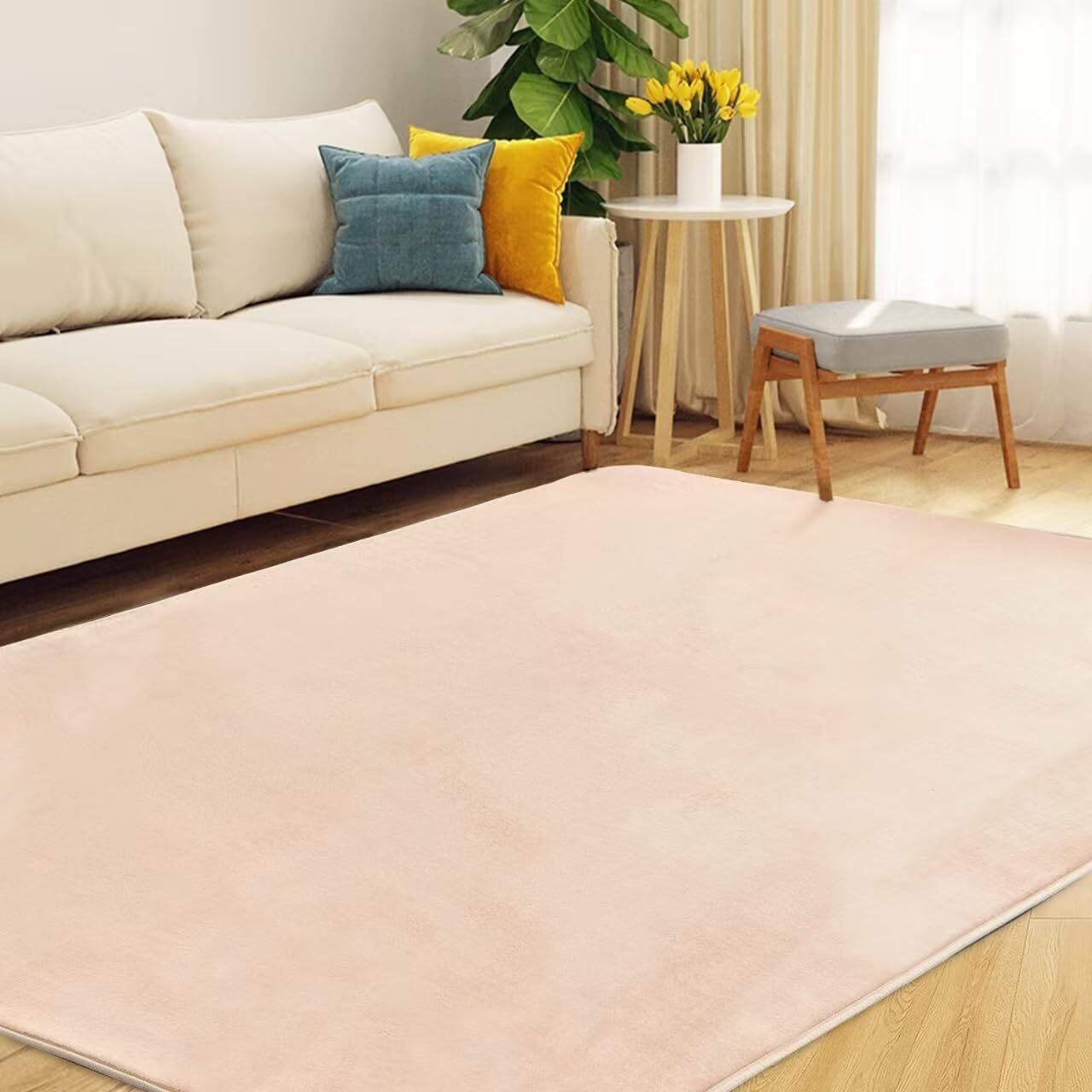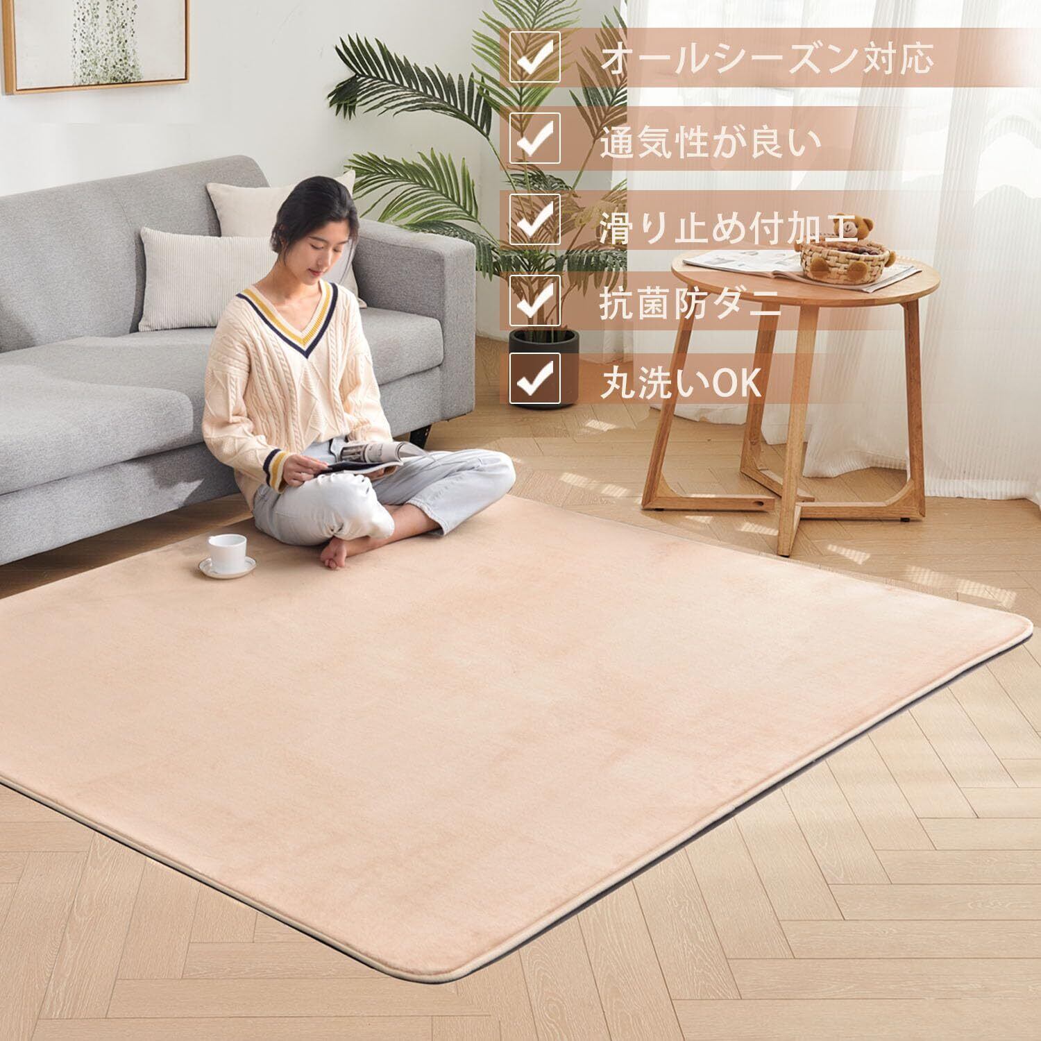 aicomri カーペット ラグ ラグマット 1.5畳 洗える 厚约7mm 130×185cm じゅうたん 滑り止め ホットカーペット対応 カーペット オールシーズン 抗菌防臭 防ダニ 撥水加工 床暖房対応 フランネル らぐまっと 無地・ベージュ