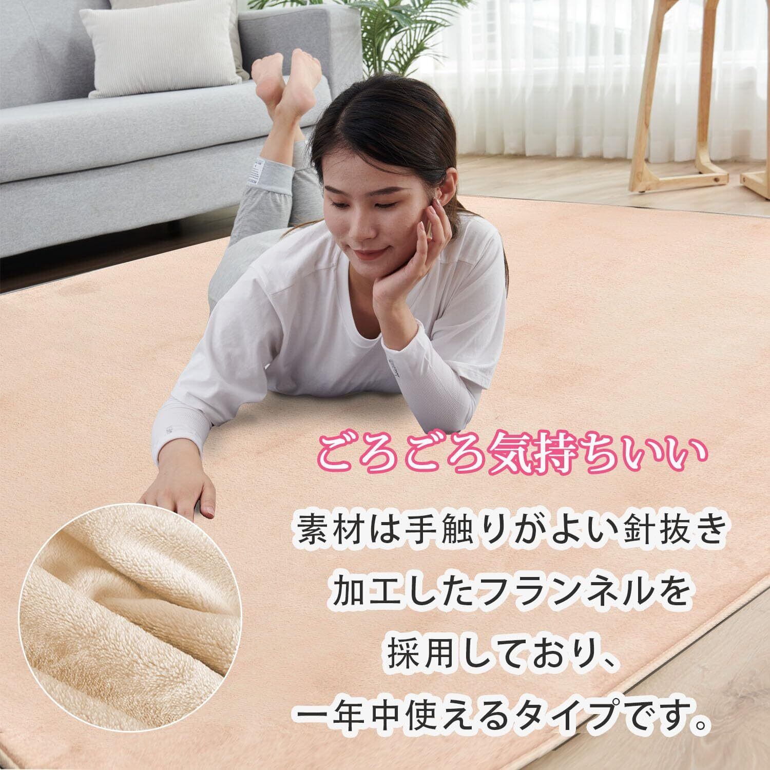 【オールシーズン対応】超費用対効果の高いカーペット1.5畳!このラグ表面のフランネル素材は極細繊維のマイクロファイバーを使って、最高に繊細なフワフワ感で体をやさしく包み込み。夏でもドライな状態を保つ、冬はホットカーペットカバー1.5畳として使われます、一年オールシーズンを通して快適にご使用いただけます。