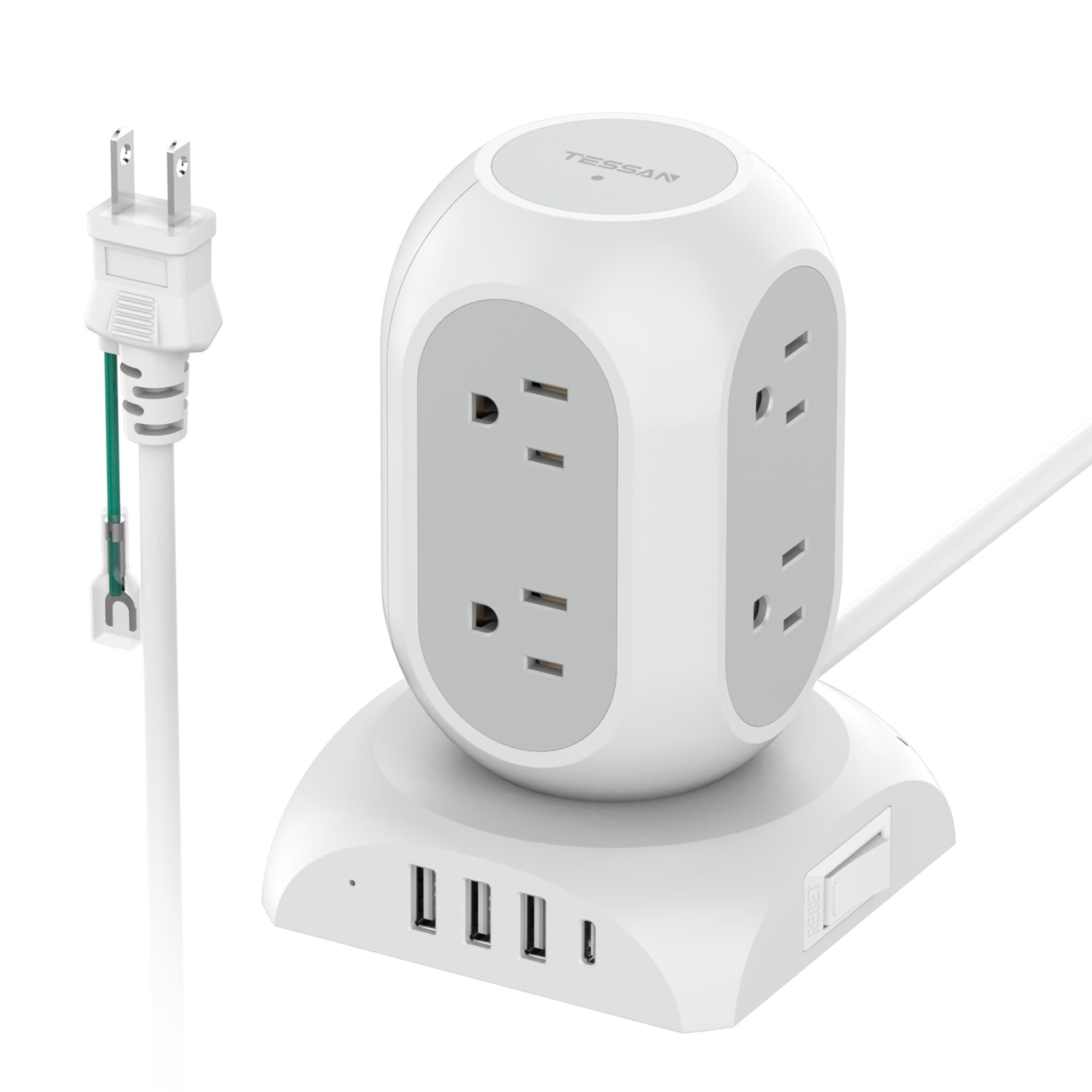 【1台12役のタワー型 電源タップ】普通のコンセントと比べて、タワー型のデザインで、縦方向の空間を有効に利用して、使用スペースを節約できます。3個のusb-aポート、1個のusb-cポートと8個のac差込口を搭載しているusb コンセント タップです。これ1つのusb タップで、12台の機器を同時に充電できます。