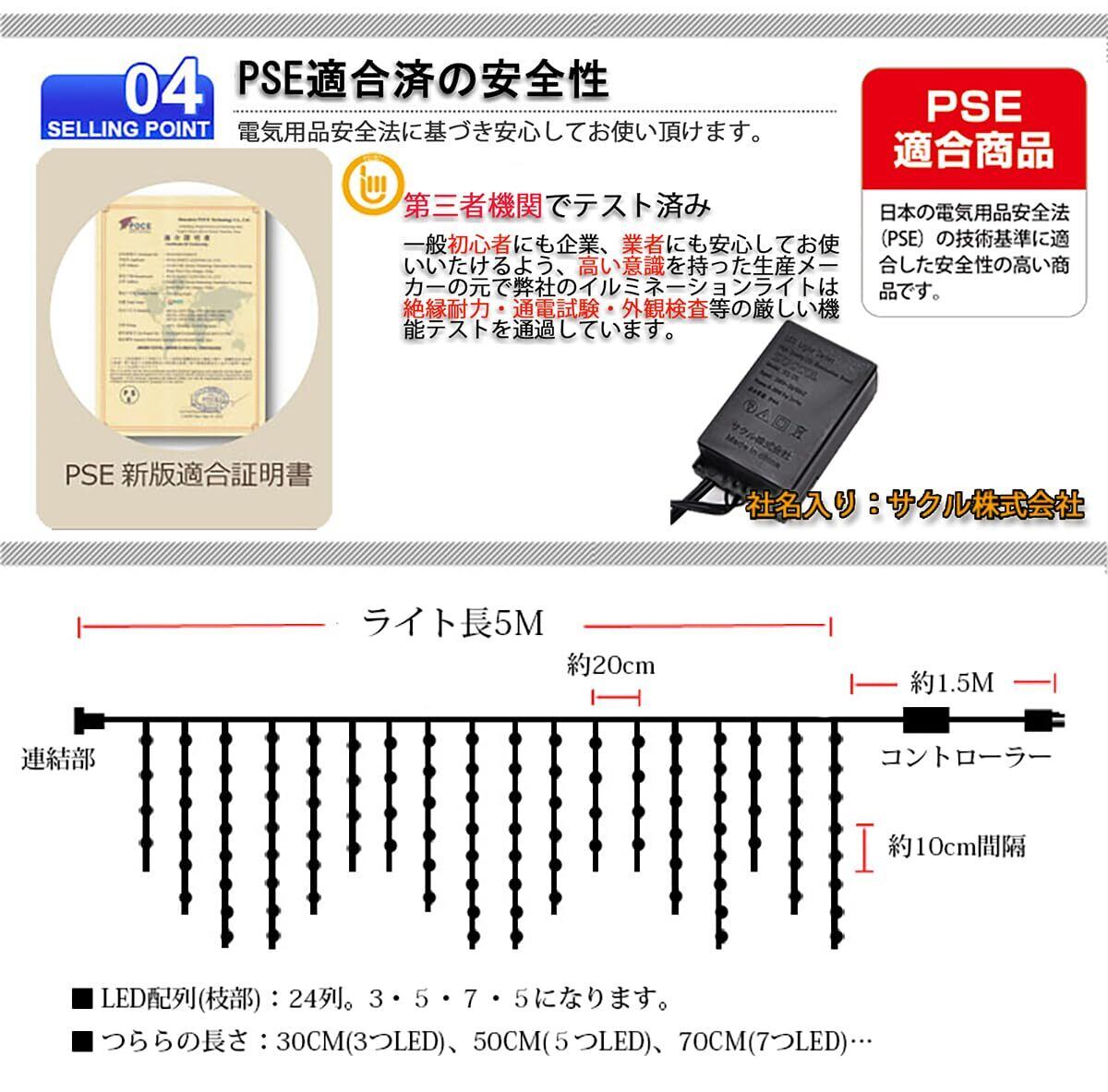 SUCCUL イルミネーション つらら LED イルミネーションライト 屋内屋外兼用 防水 防雨 連結可 クリスマス ライト 120球 5m