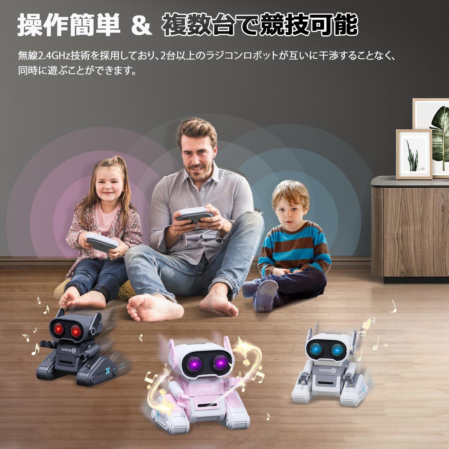【操作簡単・複数台で競技可能】:無線2.4GHz技術を採用しており、2台以上のラジコンロボットが互いに干渉することなく、同時に遊ぶことができます。友達と一緒に、また家族揃って競技しましょう!高速移動のための6つの車輪を装備し、リモコンで電動ロボットを操作して、前進、後退、左折、右折、360°回転できます。制御範囲は約30m/100ftです。