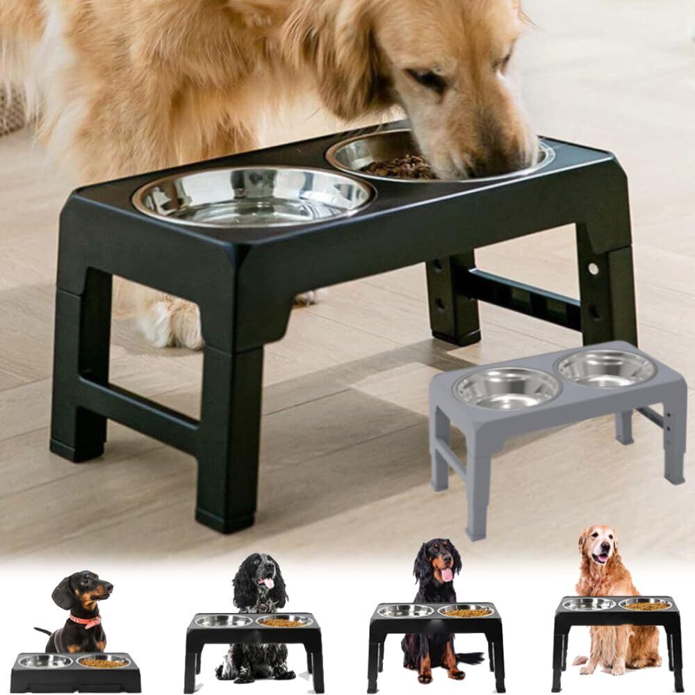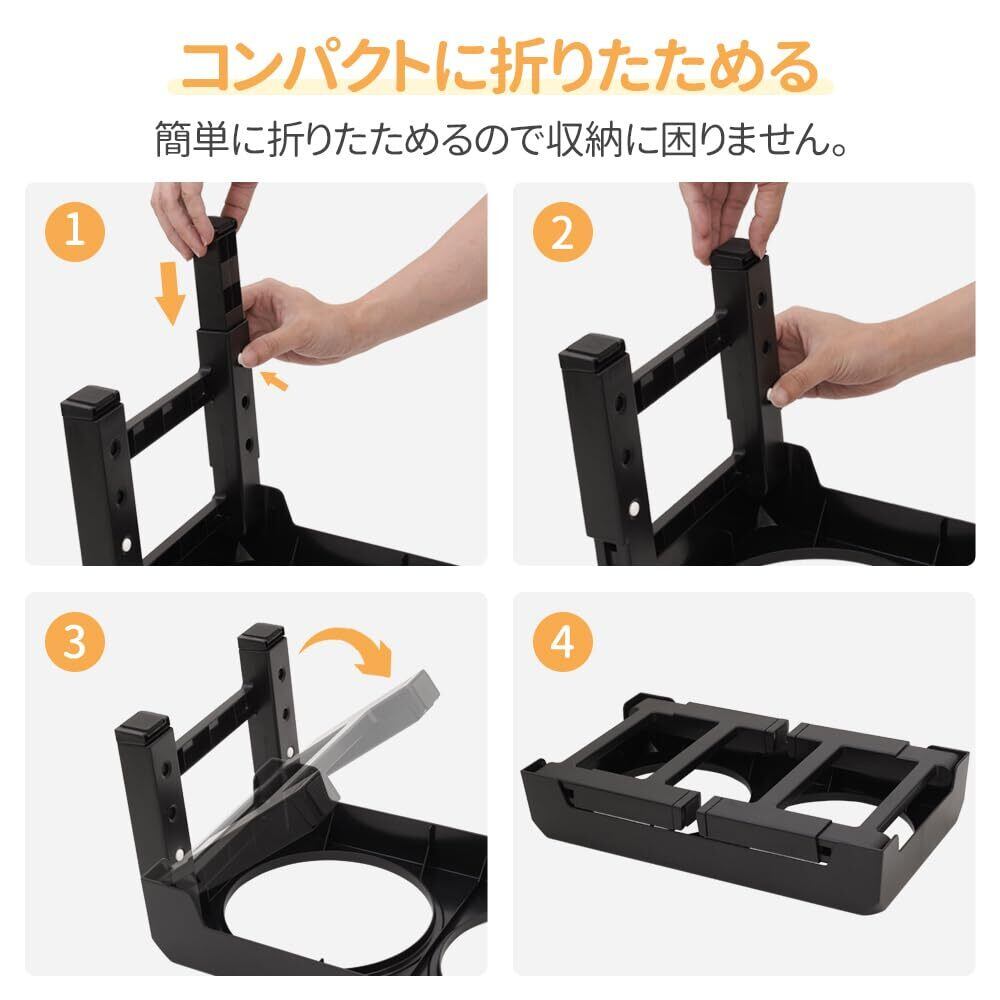 life_mart ペットボウル エサ入れ 大型犬 ~ 小犬 【 高さ調節 4段階 ステンレス製 防滴 】洗いやすい 折りたたみ 収納 フードスタンド 付き 犬 餌 食器台 フードボウル 台 お皿 ペット用品 食器 エサ台 早食い防止 小型犬 中型犬 (ブラック)